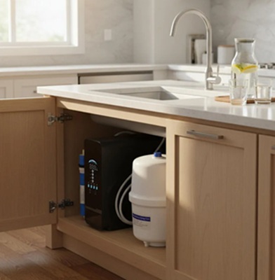 Domáce systémy reverznej osmózy sa zvyčajne inštalujú priamo pod kuchynský drez a napájajú sa na prívod studenej vody. Nezaberajú tak miesto na kuchynskej linke – na drez sa iba pridá samostatná batéria (kohútik) na čapovanie filtrovanej vody. Súčasťou filtra býva aj zásobná nádrž, ktorá uchováva prefiltrovanú vodu, takže máte kedykoľvek k dispozícii dostatok čistej vody bez čakania. Moderné filtračné jednotky mávajú aj praktické doplnky, napríklad zabudovaný digitálny displej zobrazujúci stav zariadenia a filtrov, a samy upozornia na potrebu výmeny filtra alebo iný servisný úkon.