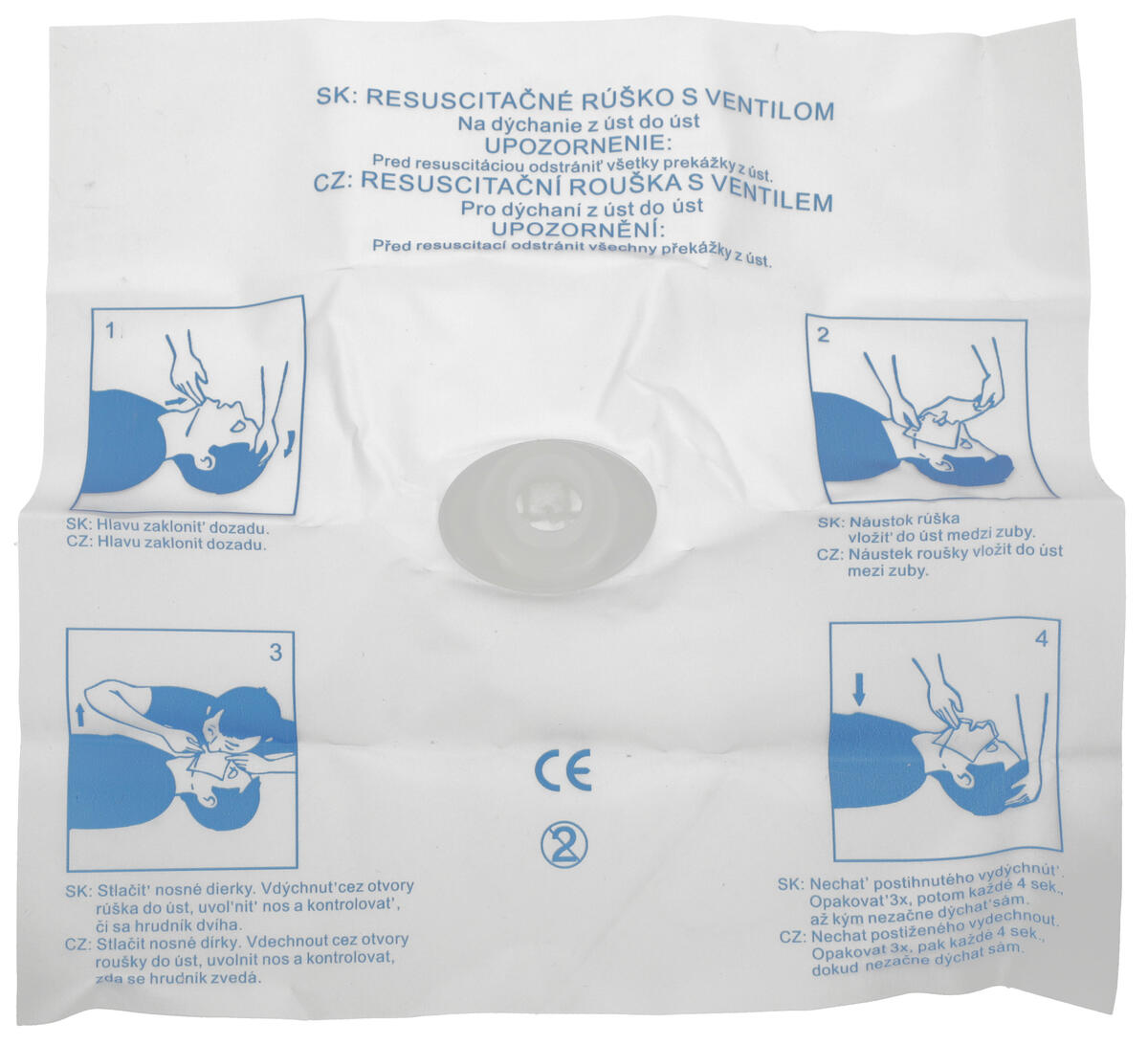 Rúško s ventilom na poskytovanie prvej pomoci pri dýchaní z úst do úst.