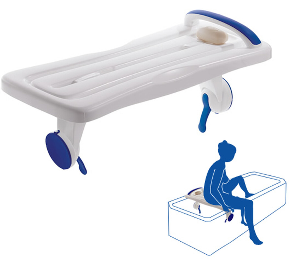 Uľahčuje nasadnutie do vane, pretože doska prečnieva cez jej okraj. Dokonalé pohodlie zabezpečuje veľká plocha sedadla.