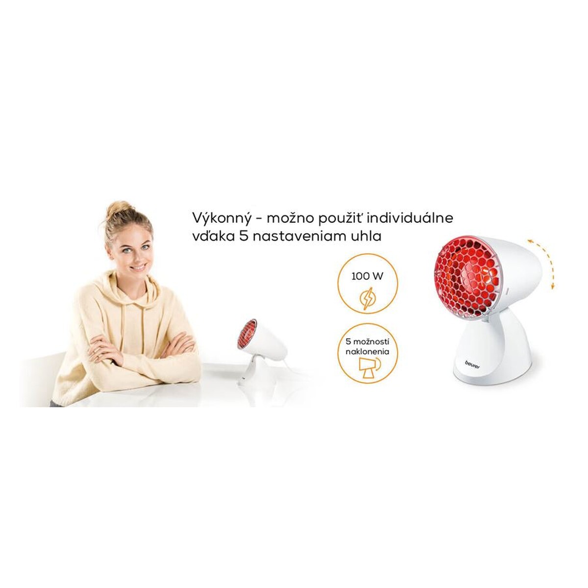 Komfort používania tejto vyhrievacej pomôcky zvyšuje možnosť nastavenia sklonu infralampy do 5 rôznych uhlov.
