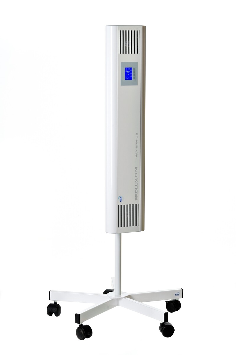 Germicídny žiarič G M15WA so spínacími hodinami je uzavretý typ žiariča, slúži teda na nepriame ožarovanie miestnosti. Táto pomôcka je veľmi praktická z dôvodu, že sa dá používať aj za prítomnosti ľudí v miestnosti. Používa nepriame ožarovanie miestnosti pomocou ultrafialového žiarenia kde vlnová dĺžka UVC 253,7nm je neviditeľná, no práve toto žiarenie spôsobuje ničenie mikroorganizmov v ovzduší. Produkt má zníženú hlučnosť na 27,4 dB, preto je vhodný na využitie aj noci, kedy nenarušuje pokoj pacientov v nemocniciach.