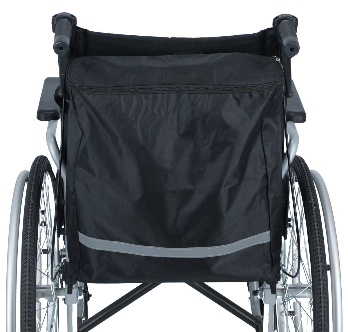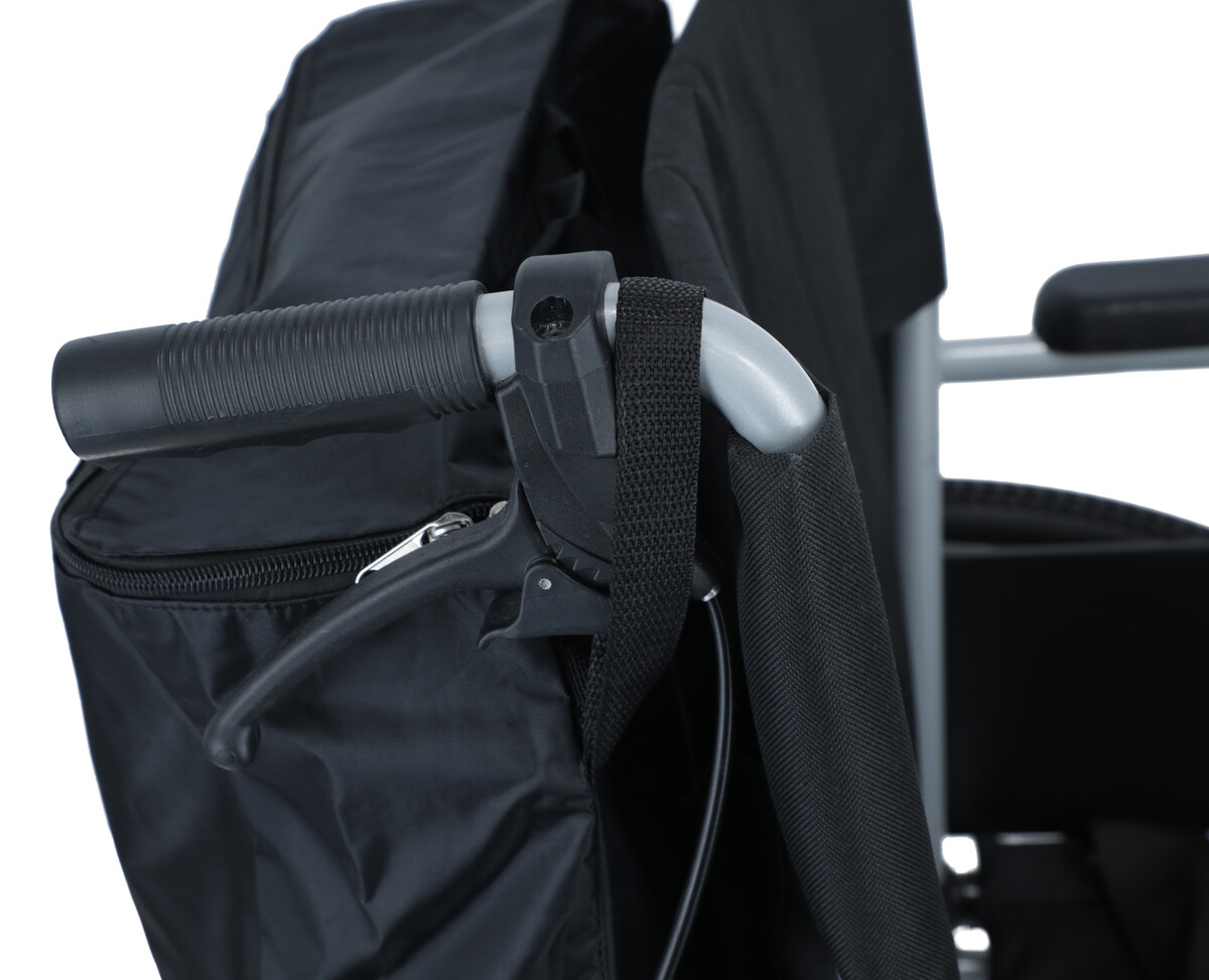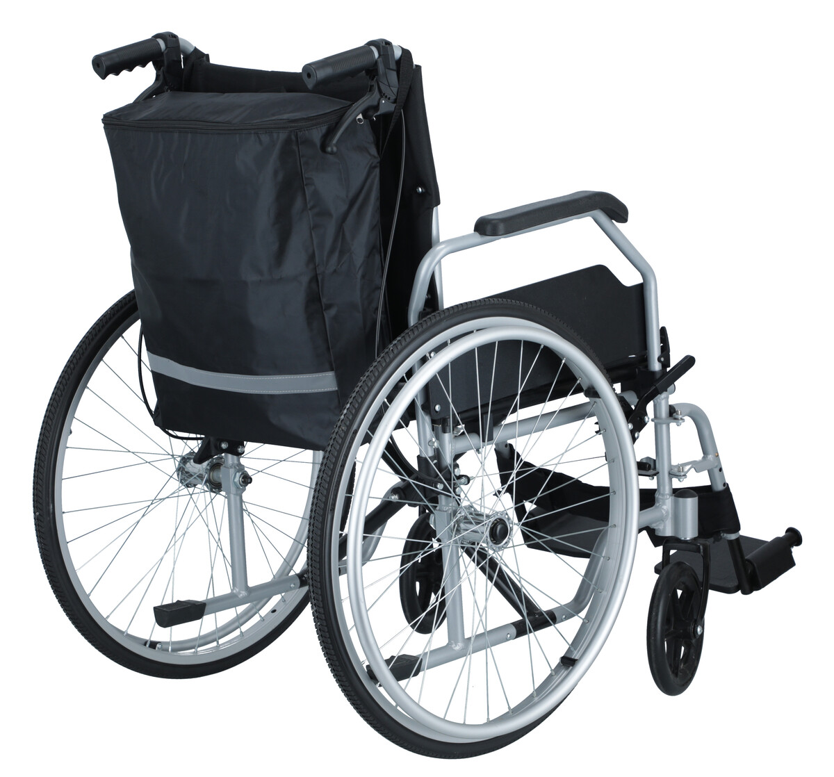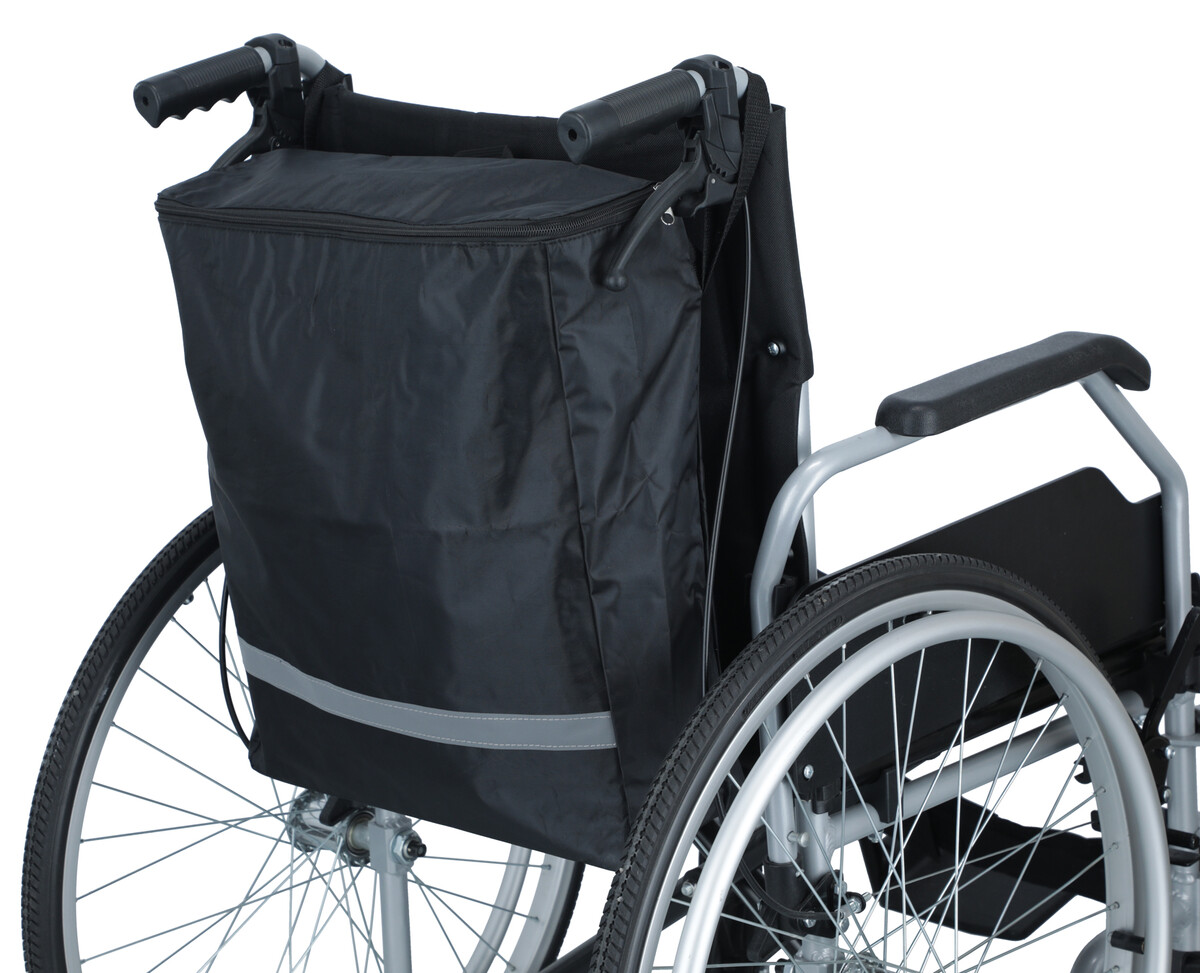Taška na invalidný vozík s U-zipsom a odrazkou sa ľahko upevní na zadnú stranu vozíka, prevlečením cez rukoväte. Vo vrchnej časti sa nachádza zips, ktorý zabezpečuje bezpečné používanie, aby sa predišlo prípadnému vypadnutiu vecí z tašky. Pri nakupovaní je možné tašku ľahko zvesiť.