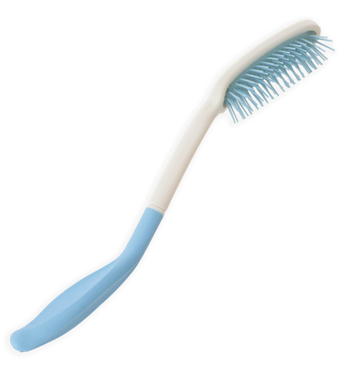Špeciálna kefa na vlasy so zahnutou rúčkou je vhodná pre ľudí s obmedzenou pohyblivosťou zápästia, lakťa alebo ramena.