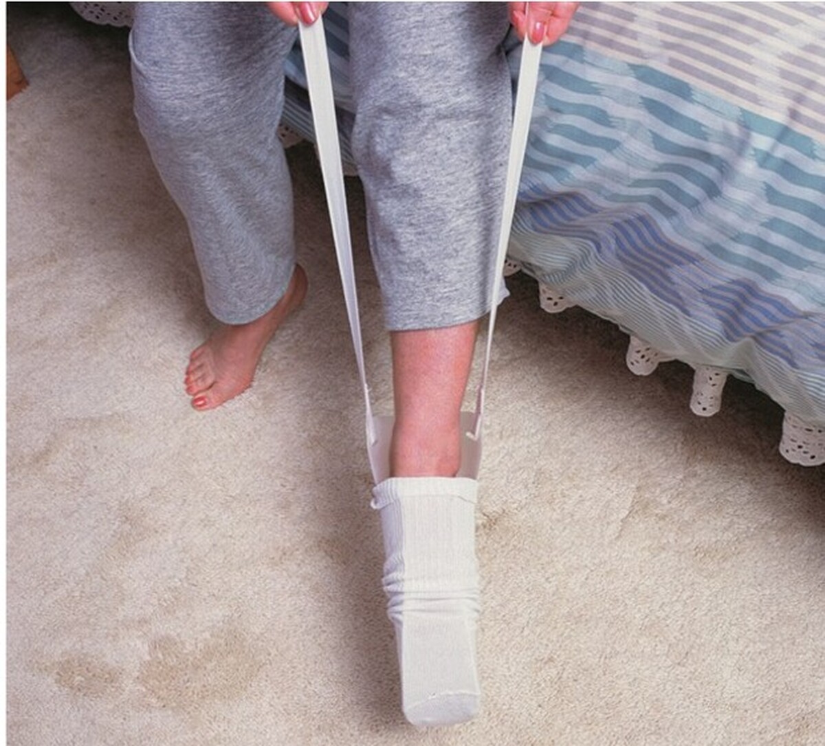 Pomôcka pri obliekaní ponožiek najmä pre ľudí, ktorí majú problém s ohnutím chrbta alebo kolien.