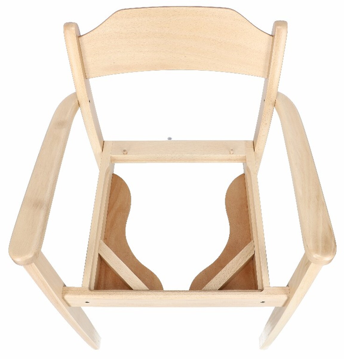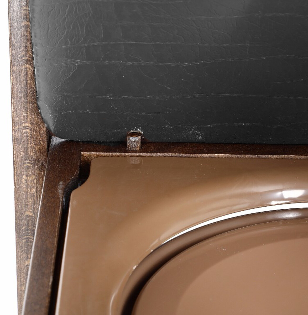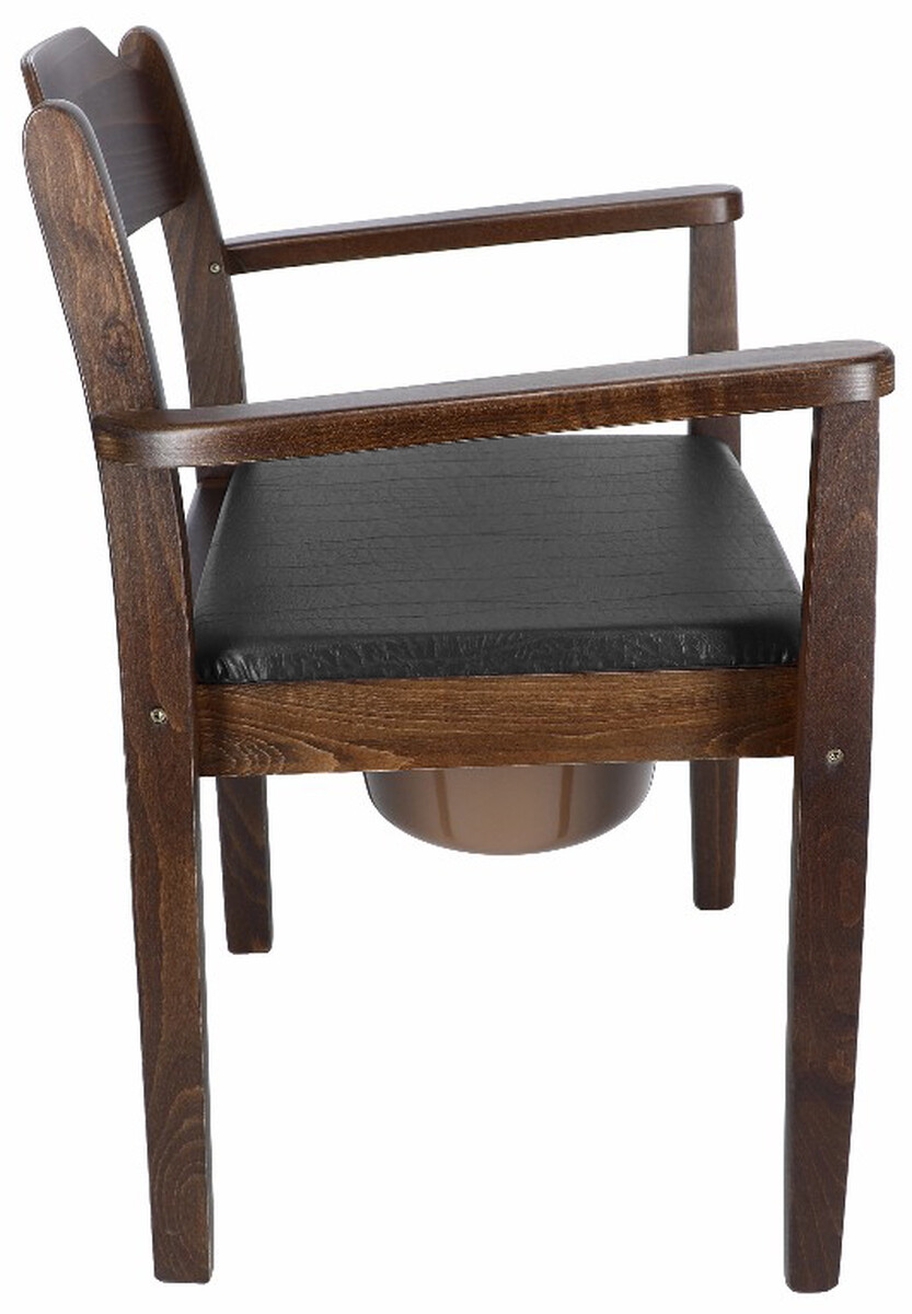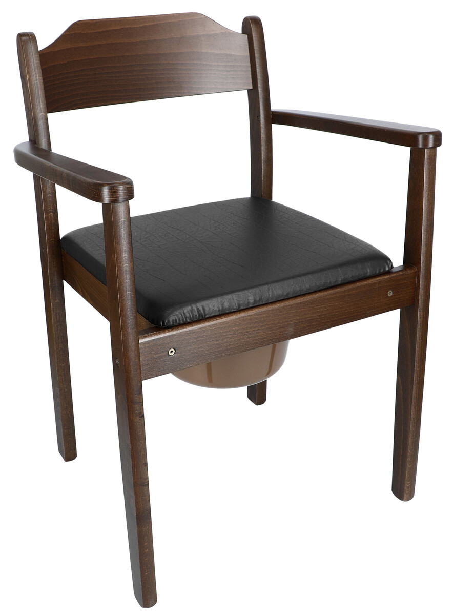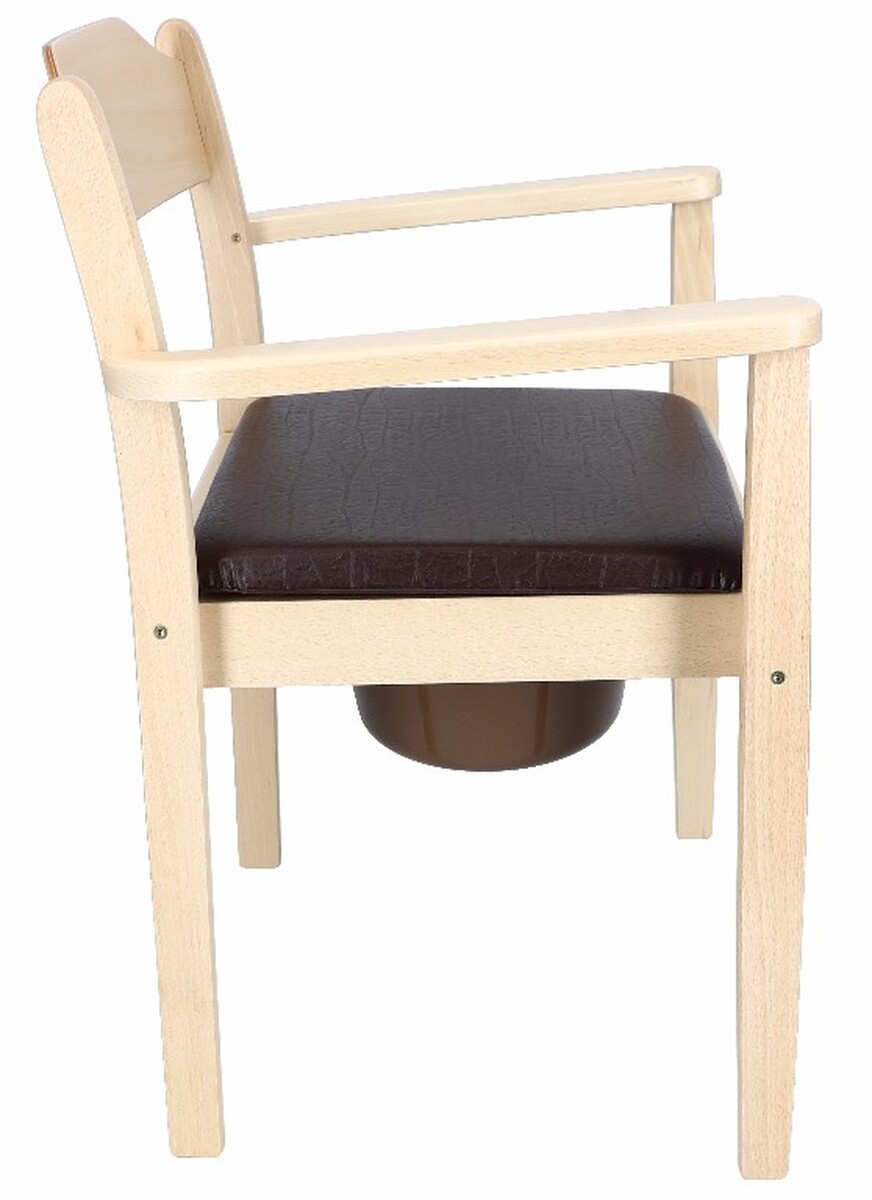 Drevená toaletná stolička s drevenou opierkou slúži ako náhrada WC pre pacientov, ktorí majú pohybové problémy.
