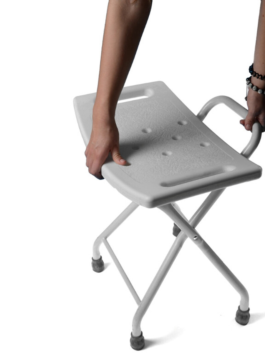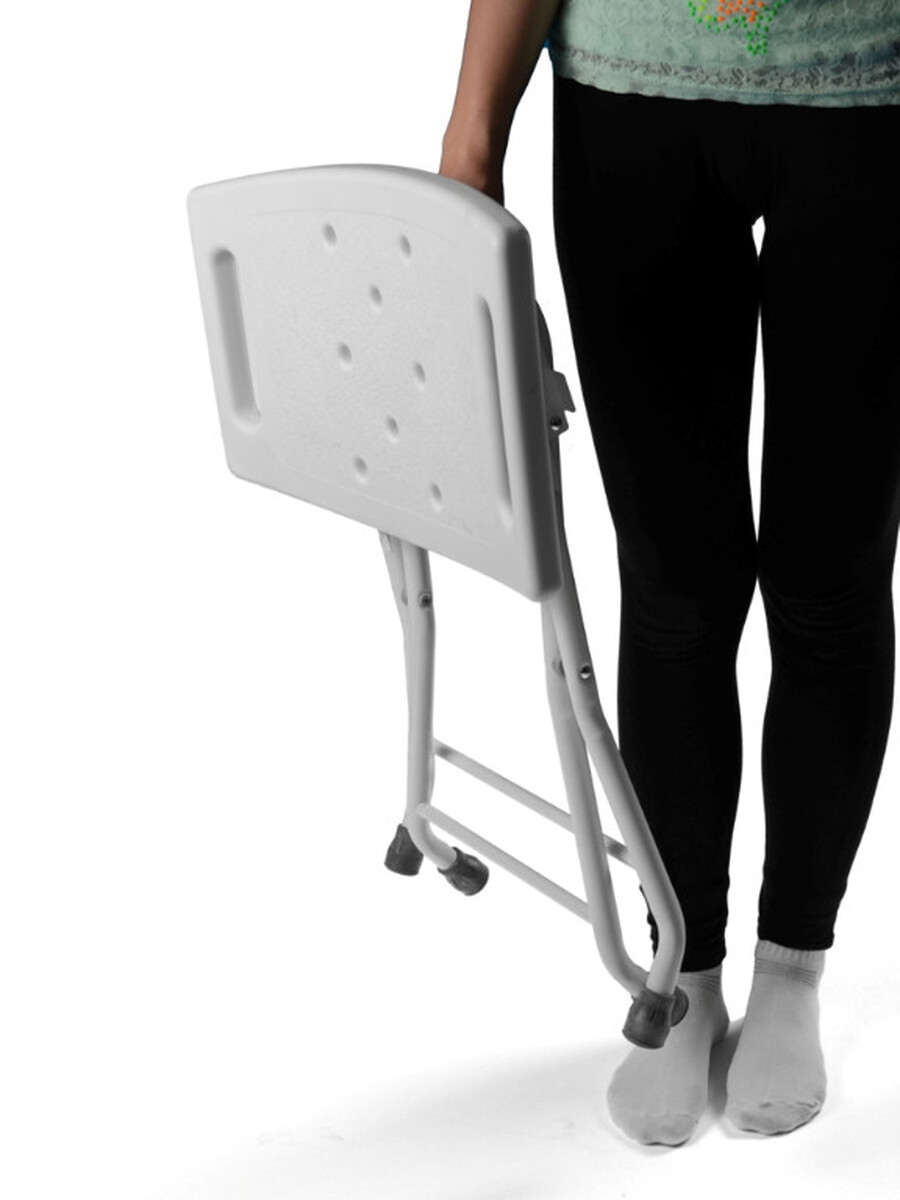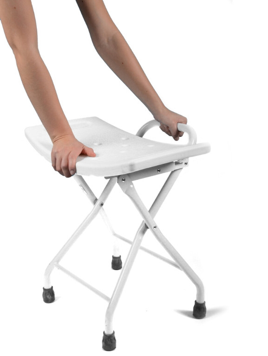 Skladacia sprchovacia stolička je určená pre ľudí, ktorí nevládzu stáť v sprche alebo vo vani počas celej doby sprchovania. Povrch stoličky je protišmykový a nachádzajú sa na ňom perforované otvory, aby voda mohla postupne odtekať.
