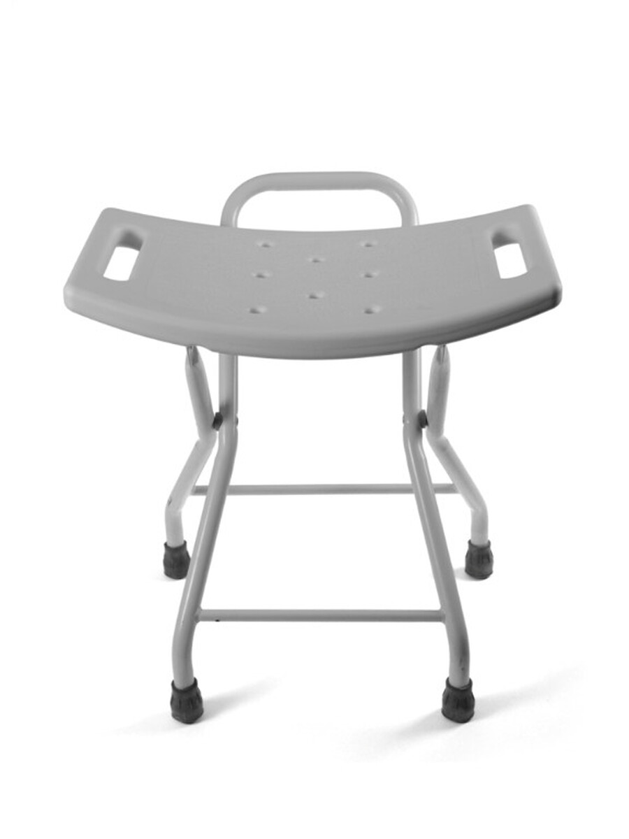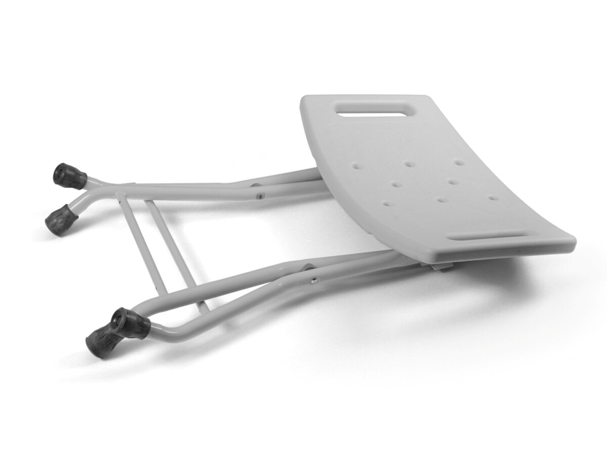 Sprchovacia skladacia stolička s hliníkovým rámom a perforovanými otvormi. Možno ju použiť v sprche alebo vo vani. Jednoduchá na uskladnenie.