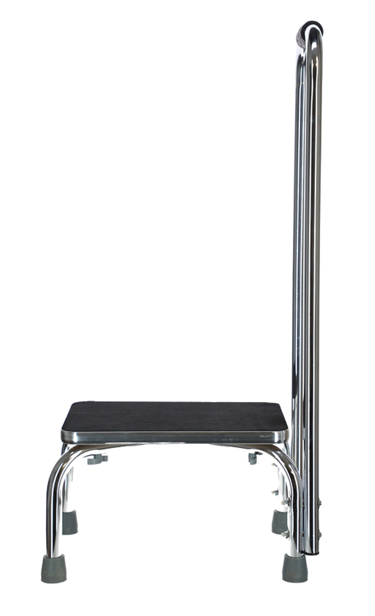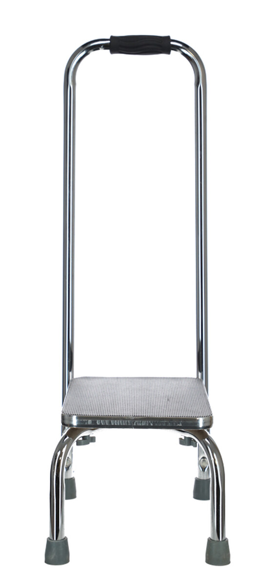 Jednostupňový schodík UNIZDRAV s rukoväťou uľahčuje dosahovanie na vyššie miesta a zdolávanie rôznych výškových bariér, napríklad v kúpeľni pri vstupe a výstupe z vane.