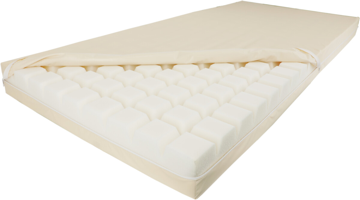 Antidekubitný matrac s jadrom, ktoré má zárezy, slúži ako prevencia proti preležaninám, má vynikajúce antibakteriálne vlastnosti, je elastický a odolný voči prenikaniu vody.