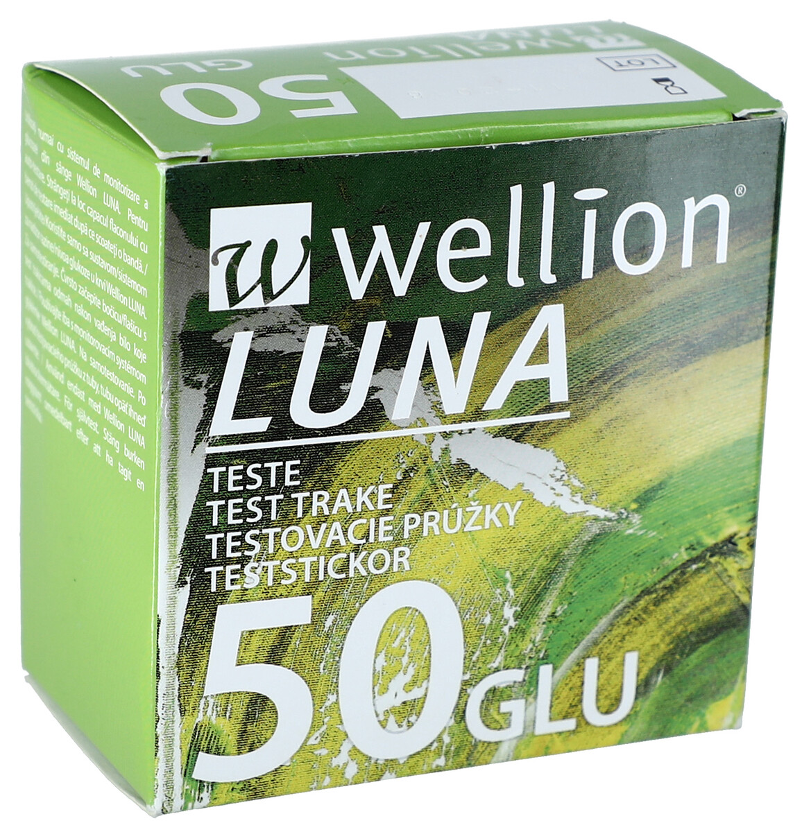 Náhradné testovacie prúžky - Wellion Luna Glu na samodiagnostiku merania glukózy v krvi pomocou glukomerov Wellion.
