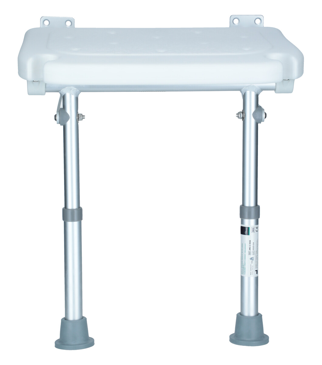 Nástenná výškovo nastaviteľná sklopná sedačka do sprchy s nôžkami je určená pre pacientov, ktorí nie sú schopní stáť počas celej doby sprchovania. Sedačka sa upína k stene pomocou skrutiek.