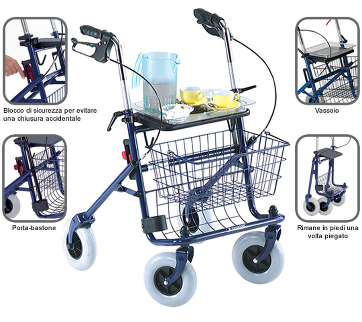 Rehabilitačná pomôcka štvorkolka Quatro je vyrobená z ocele. Slúži ako pomôcka pri chôdzi poskytujúca oporu a stabilitu. Je vybavená oblúkovými brzdami, košíkom a držiakom na palicu. Anatomicky tvarované rukoväte a veľká sedačka prispievajú k veľmi pohodlnému používaniu a umožňujú komfortný oddych.