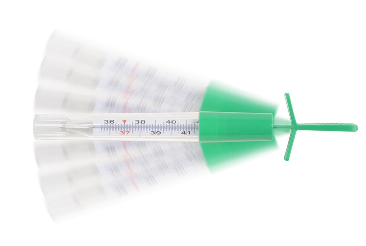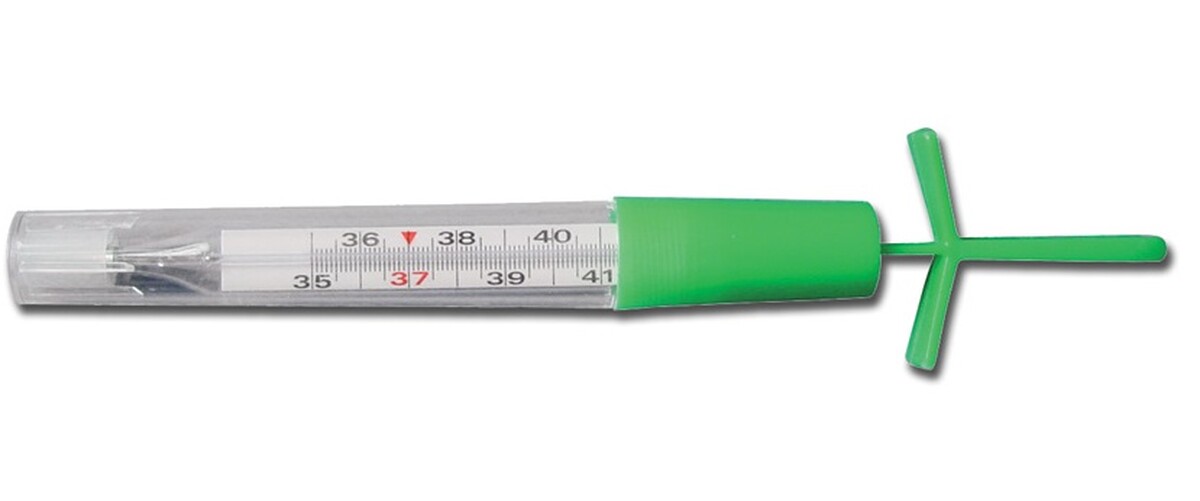 Súčasťou balenia je aj pomôcka, pomocou ktorej dostanete meraciu kvapalinu späť pod hodnotu 37°C, a tak je teplomer opäť pripravený na ďalšie meranie. Teplomer vložíte do puzdra so zeleným vrchnáčikom a zatrasiete.