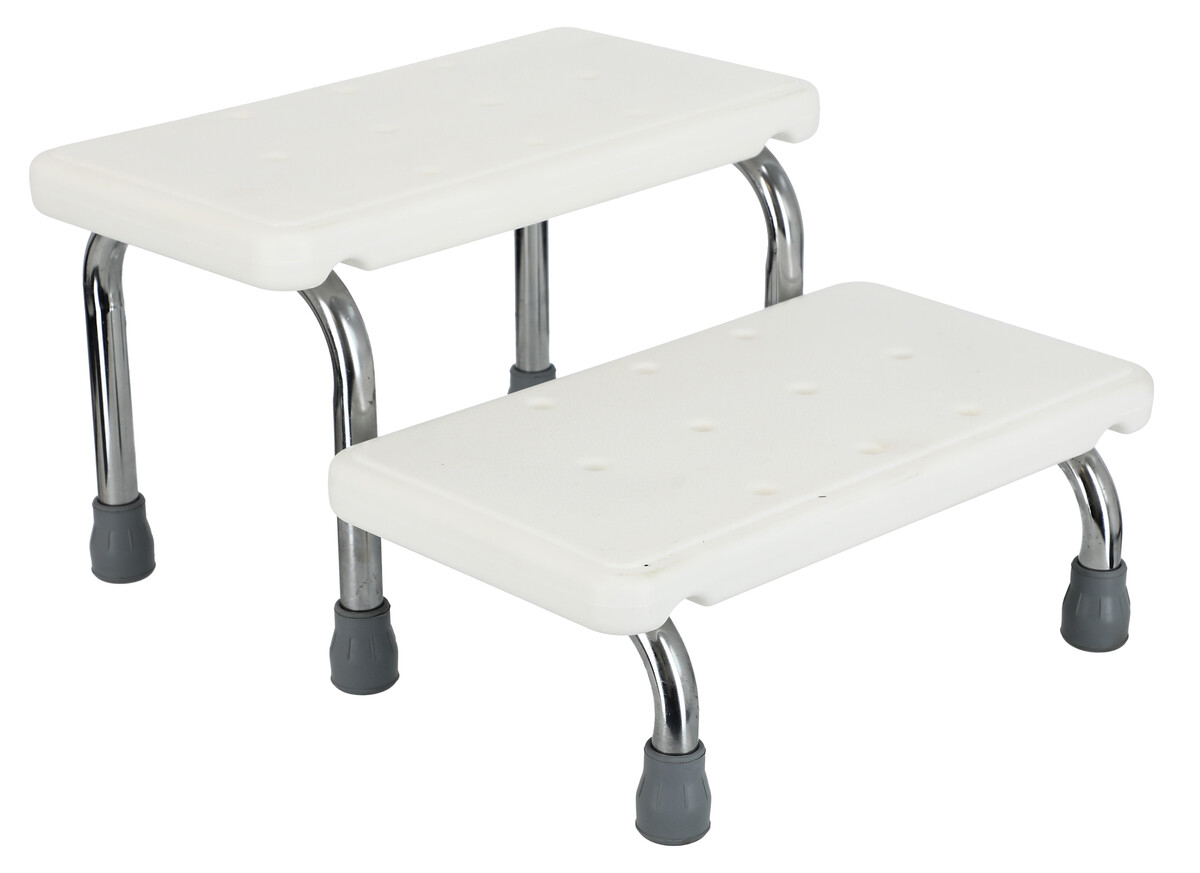 Dvojstupňový schodík je vhodný na zdolávanie výškových prekážok a uľahčuje prístup k hygienickým zariadeniam. Je vyrobený z ocele  a povrch tvorí plast s  protišmykovou  úpravou  s otvormi.