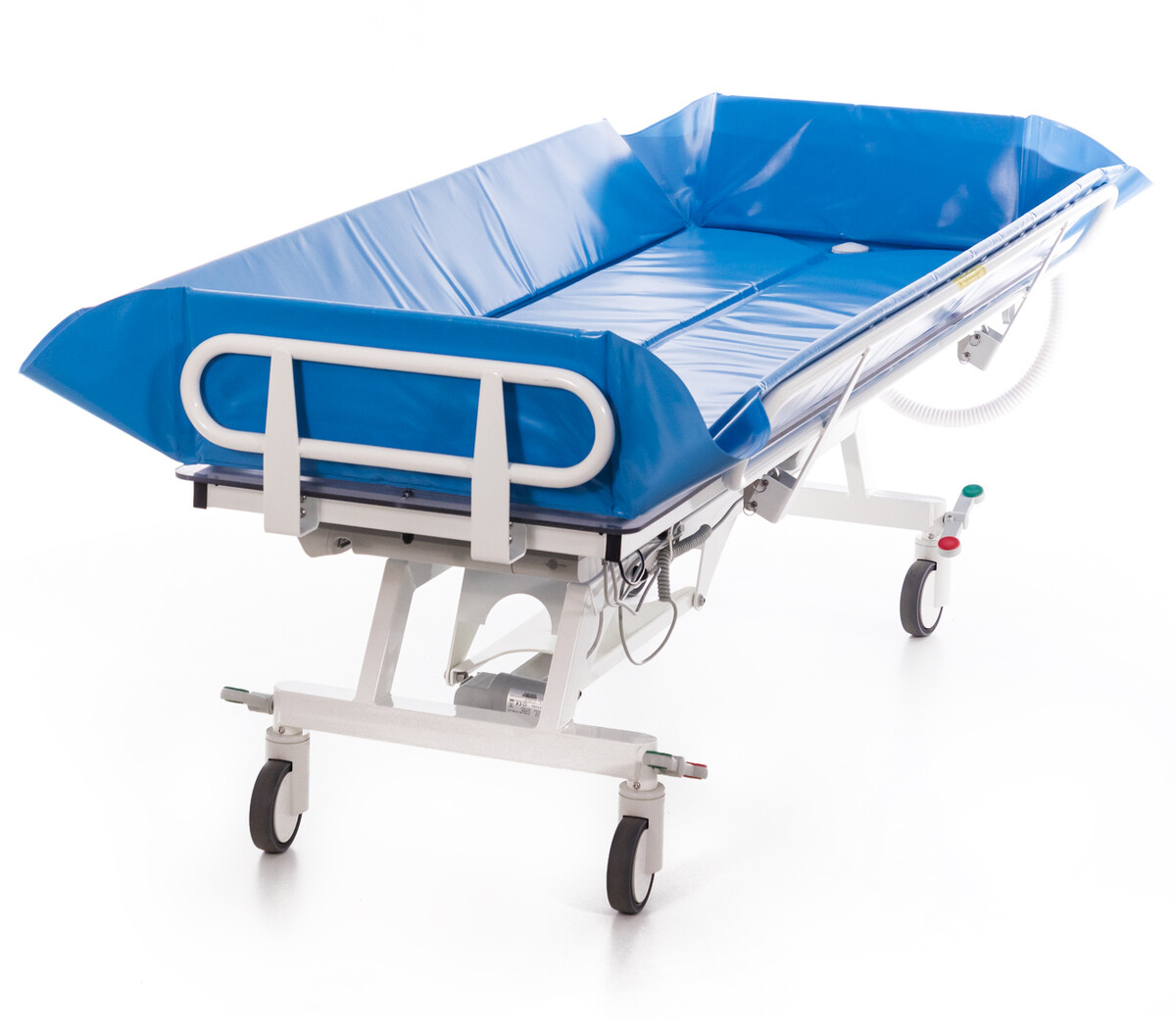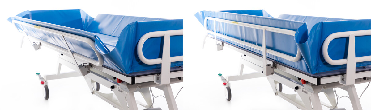 Súčasťou kúpacieho lôžka je penový vankúš (55 x 55 x 14/2 cm ), ktorý uľahčuje celý proces osobnej hygieny a plastový kryt podvozku. Sklopné nerezové zábrany po obvode ložnej plochy, zvyšujú bezpečnosť pacienta pred pádom.
