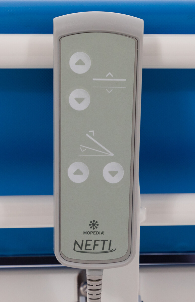 Výška a polohovanie kúpacieho lôžka je zabezpečená elektrickým zdvihákom pomocou stĺpov.