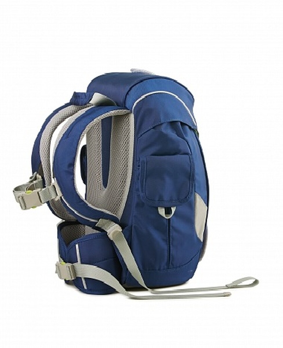 Batoh obsahuje nastaviteľný bedrový aj hrudný popruh. Tento systém popruhov zabezpečuje, že sa celková váha a záťaž prenáša do najstabilnejšej oblasti panvy. Školská taška je tak vždy umiestnená správne na chrbte a maximálne odľahčuje oblasti krčnej a bedrovej chrbtice, a to aj pri šantení a skákaní.