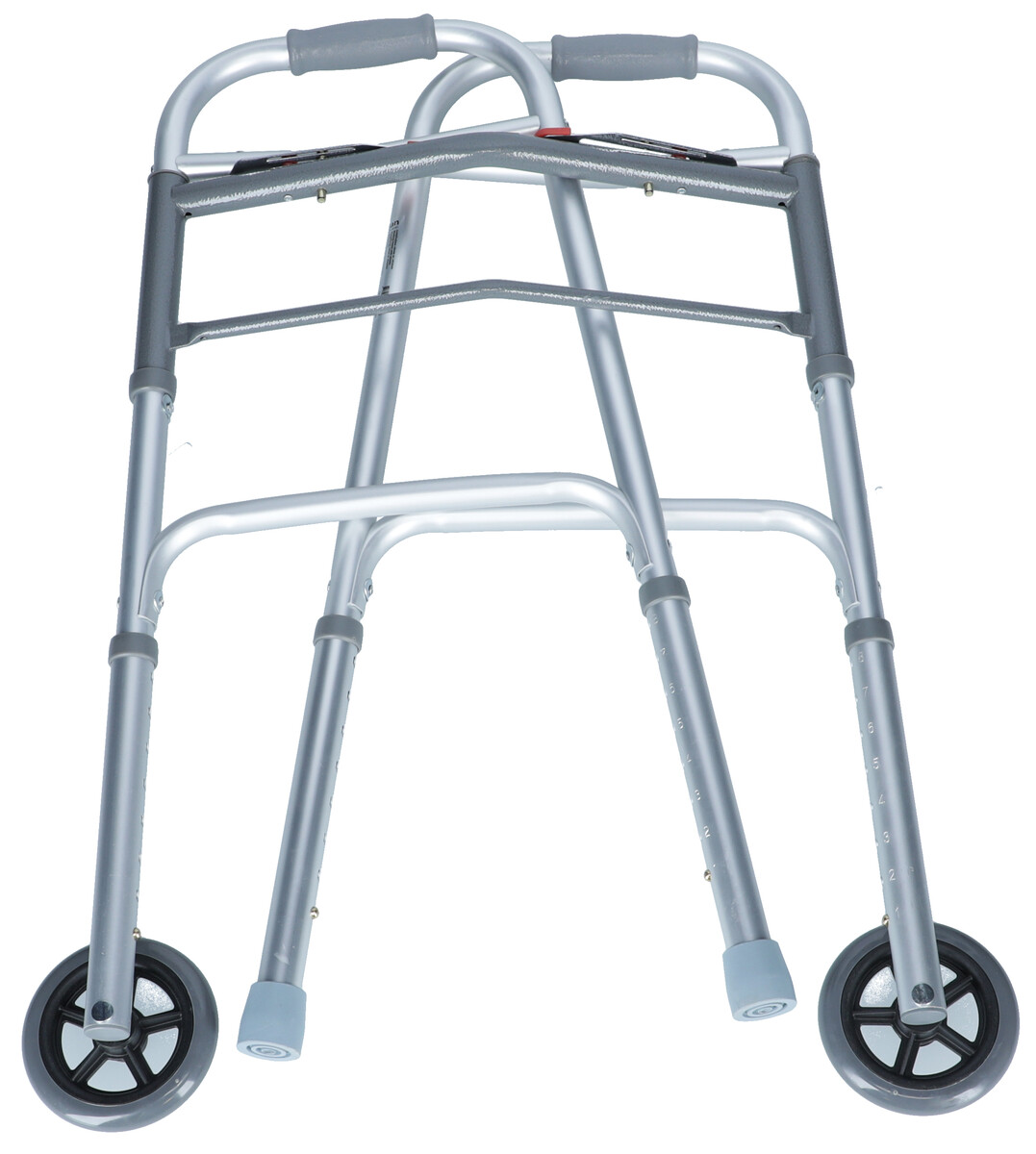 Na dvoch nôžkach sa nachádzajú kolieska a na zvyšných dvoch plastové  nadstavce, ktoré zabraňujú pošmyknutiu.