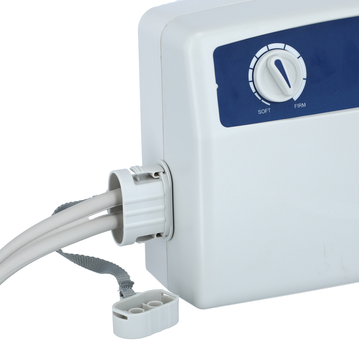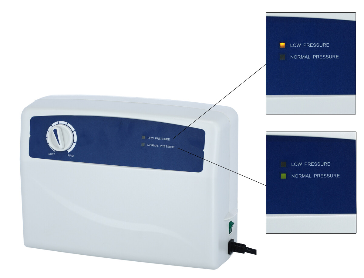 Kompresor obsahuje aj regulátor, ktorý upravuje tlak v matraci na základe hmotnosti pacienta. K dispozícií má svetelné kontrolky, ktoré signalizujú optimálny aj nízky tlak v matraci.