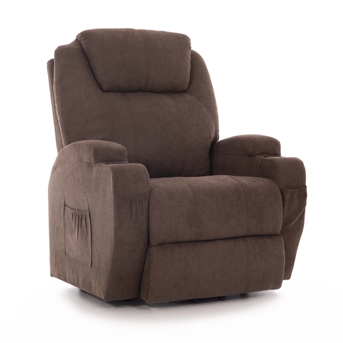 Masážne polohovacie kreslo s vyklápaním látkové, tmavohnedé        Masážne polohovacie kreslo s vyklápaním látkové, tmavohnedé