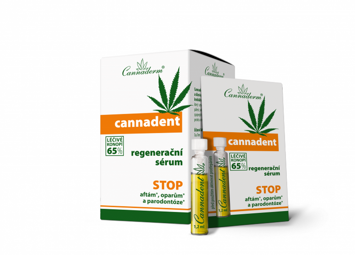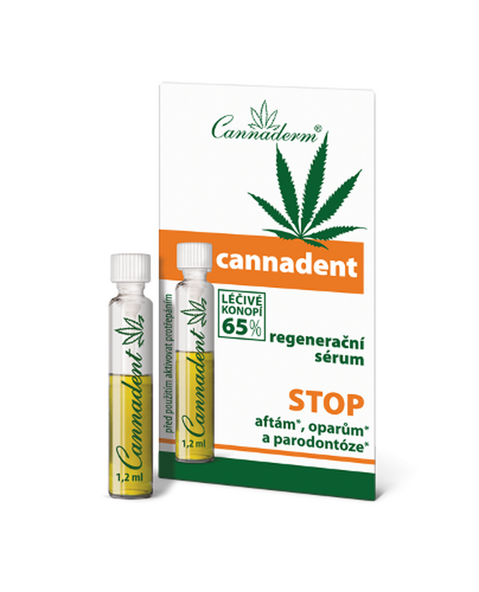 Cannadent regeneračné sérum určené na priamu starostlivoť o pery a sliznicu ústnej dutiny. Pôsobí pri výskyte oparov, pri aftách, paradentóze, otlakoch od strojčeka na zuby alebo od protézy.