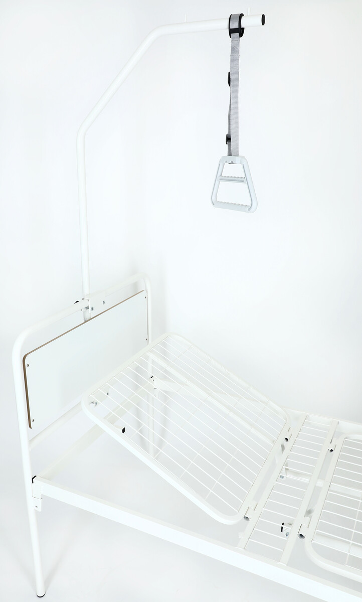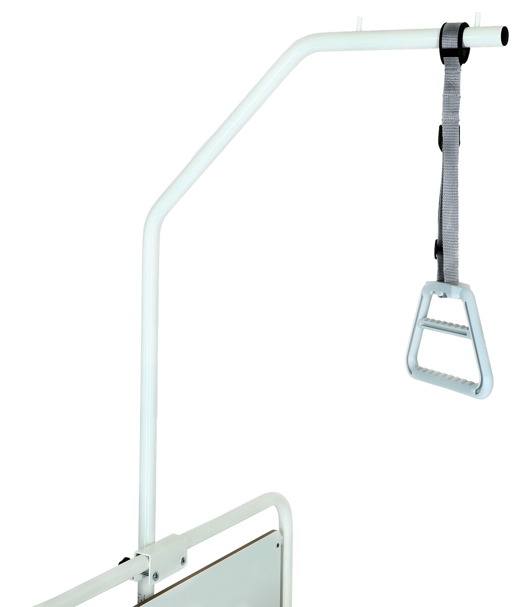 Hrazda, ktorá sa pripevňuje vzadu o posteľ, je vyrobená zo zosilnenej chrómovanej ocele. Je vhodná hlavne pre nemocničné postele. Výška hrazdy od vrchnej časti čela postele až po miesto, kde sa pripevňuje popruh je 135 cm.