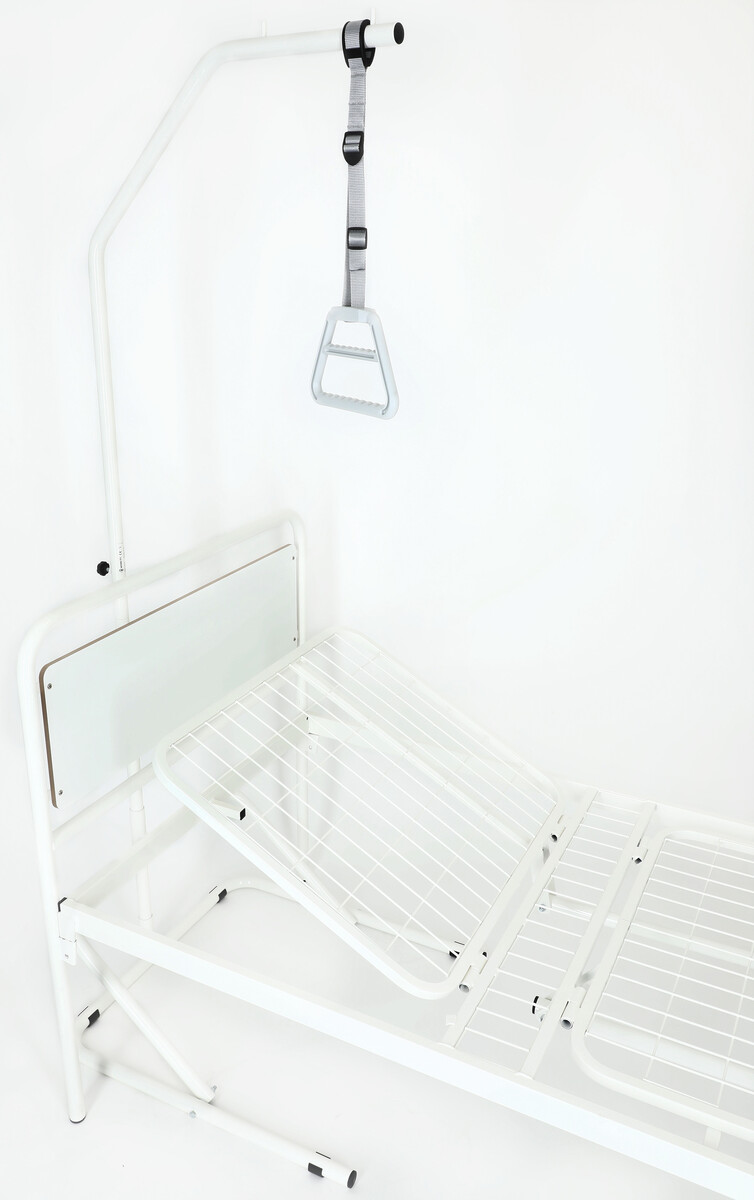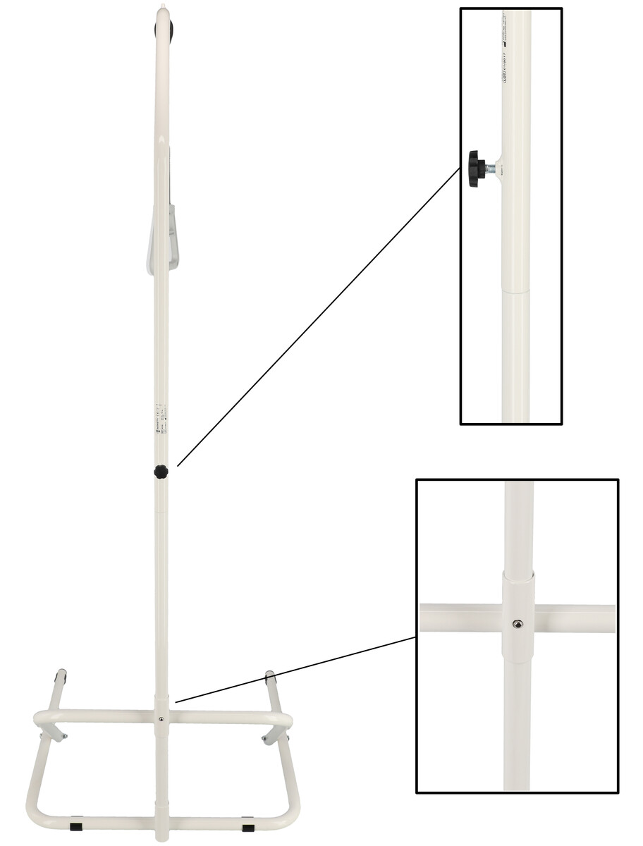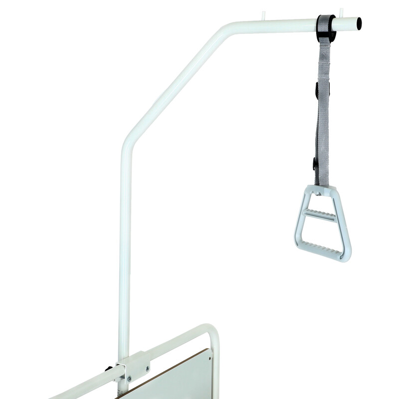 Vzpriamovacia hrazda je vyrobená zo zosilnenej chrómovanej ocele s trúbkou o priemere 3 cm. Celková výška hrazdy je 186 cm. Hrazda má skladací základ, ktorý sa zasúva pod posteľ. Popruh, na ktorom je zavesený triangel (hrázdička) je výškovo nastaviteľný.