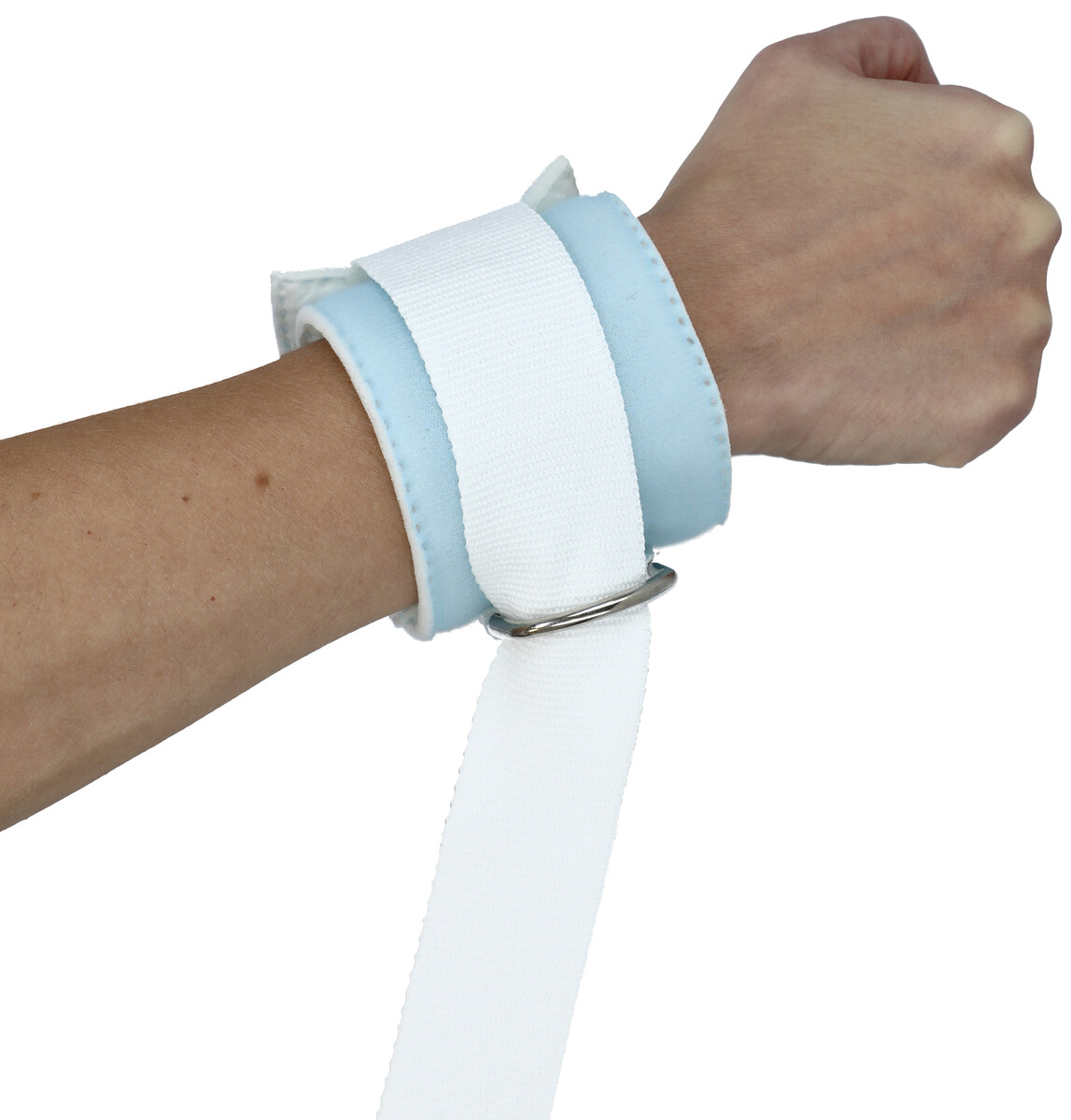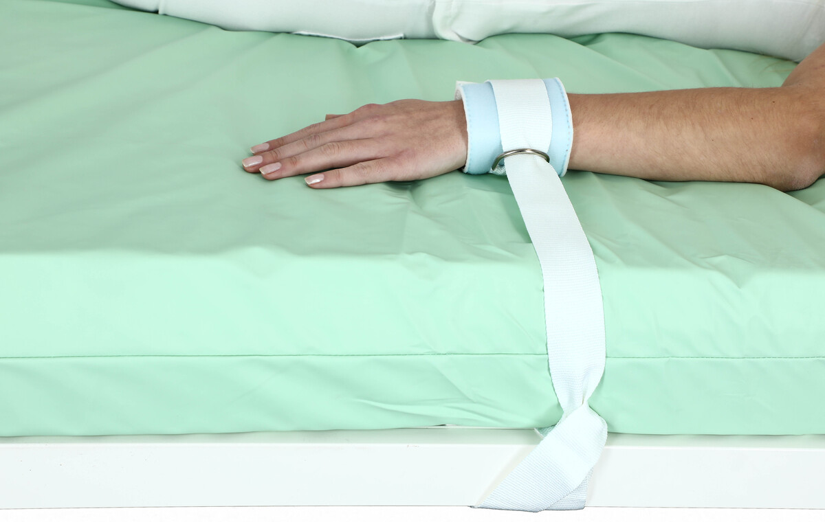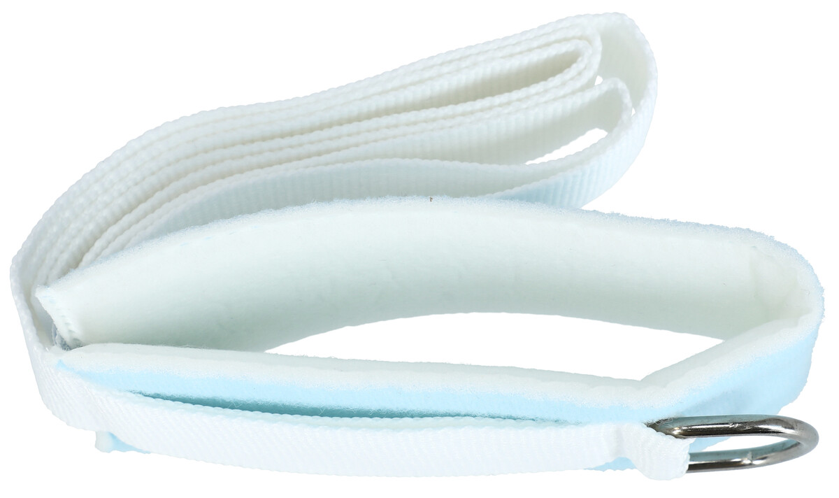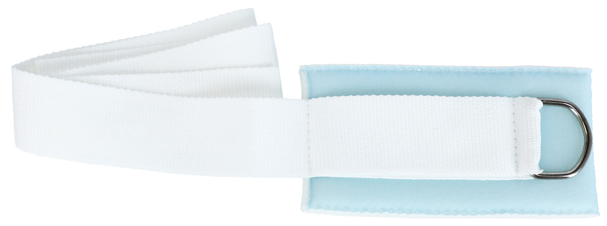 Fixácia rúk a nôh so slučkou vyrobená z pevnej tkaniny príjemnej na dotyk tela. Dlhý biely pás sa upevňuje na posteľ alebo pod posteľ, aby pacient nehýbal rukou, napríklad počas podávania infúzie.