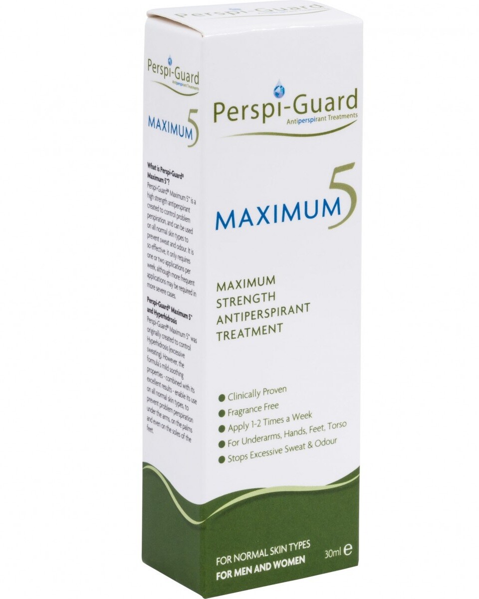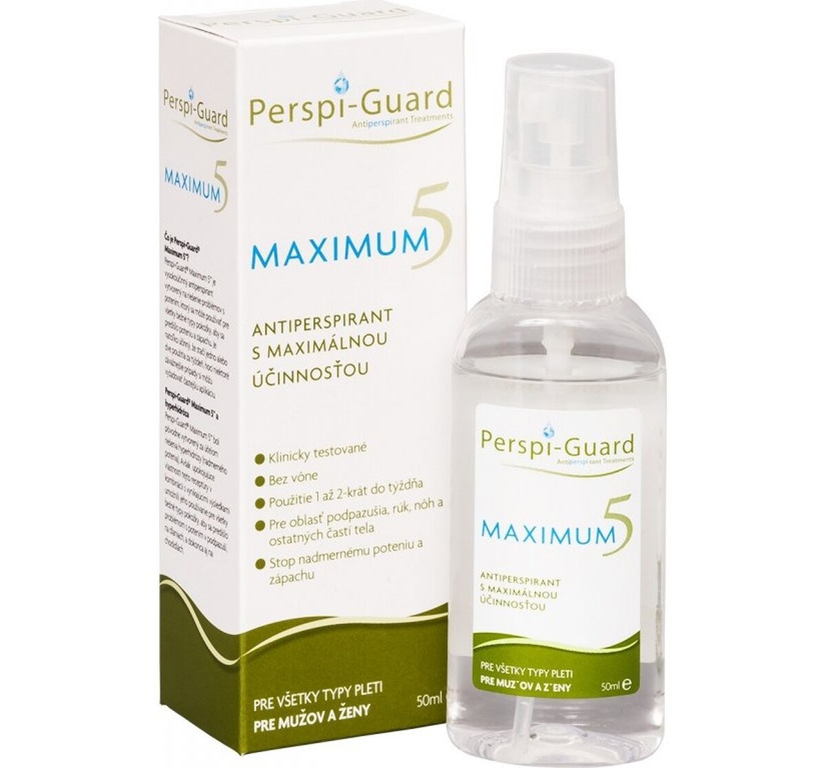 Antiperspirant Perspi-guard Maximum poskytuje až 5-dennú kompletnú ochranu, ktorá zreguluje produkciu potu. Aplikuje sa len raz alebo dvakrát týždenne na väčšinu problémových miest, ako je podpazušie, dlane, chodidlá, triesla alebo hlavu. Je silný a účinný. Vďaka praktickému rozstrekovaču je vhodnou voľbou pre celú rodinu, pre ženy i mužov.