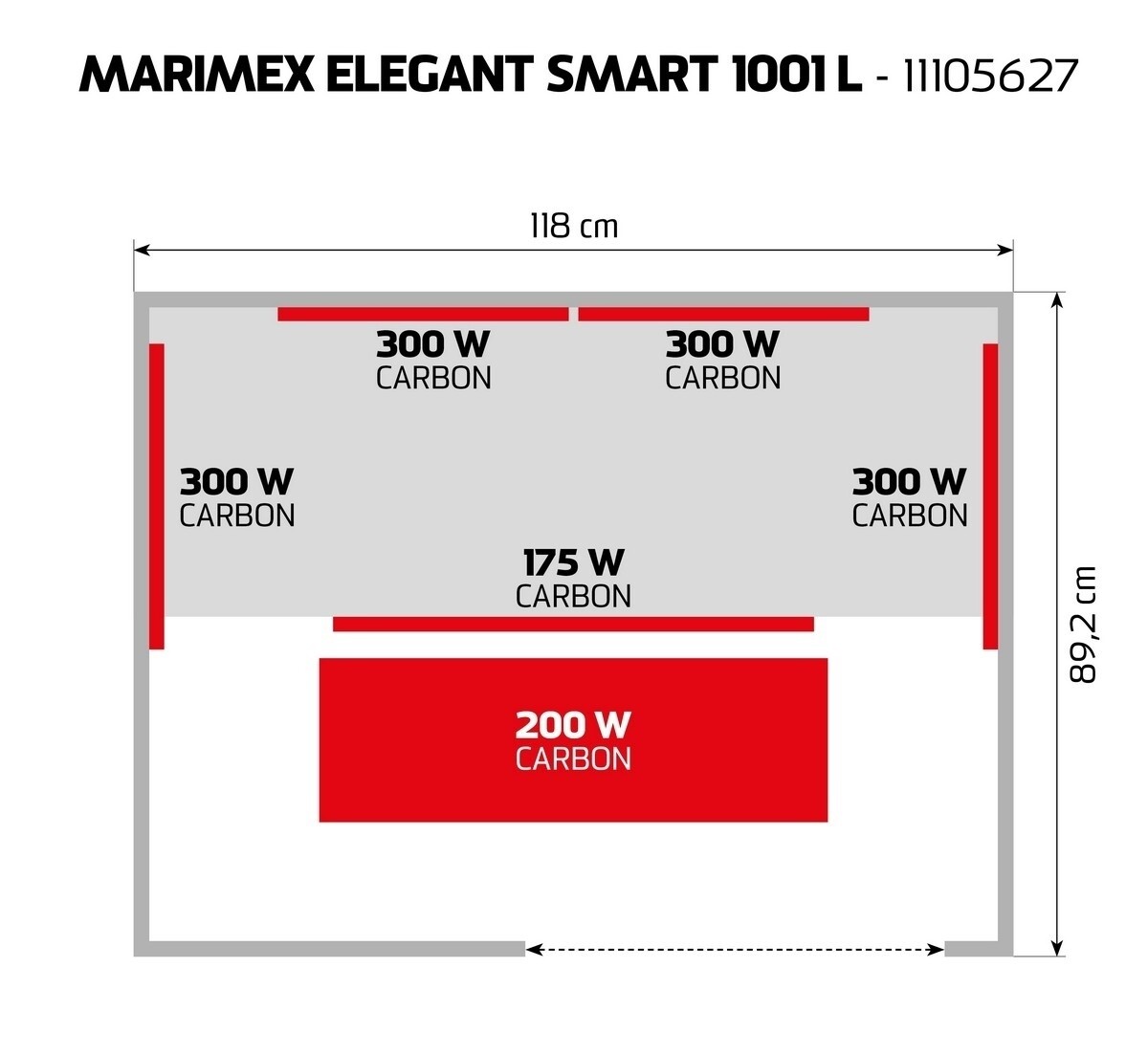 V infrasaune je rozmiestnených šesť karbónových žiaričov. V porovnaní s inými typmi karbónové žiariče tvoria tenké pásy, ktoré vyvinú povrchovú teplotu 70 - 170 stupňov Celzia. Karbónové žiariče dosiahnu maximálne teploty pomalšie, naproti tomu majú dlhšiu životnosť (pri saunovaní 3x týždenne cca 90 rokov). Tento typ žiaričov prehreje ľudské telo rovnomerne a do hĺbky. Táto infrasauna obsahuje vstavaný karbónový podlahový žiarič. Relaxáciu v infrasaune si môžete spríjemniť aj LED svetelenou terapiou. Súčasťou výbavy je rádio/mp3 prehrávač, strešná ventilácia a vnútorné osvetlenie.