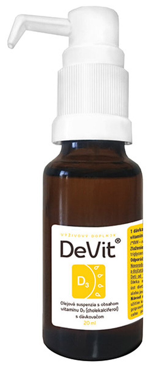 DeVit je výživový doplnok s obsahom vitamínu D3 (cholakalciferol) s dávkovačom.