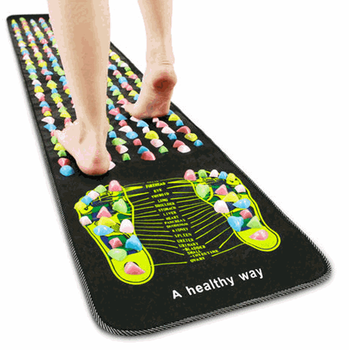Akupresúrna kamienková podložka je založená na teórii akupresúry. Body na nohách stimulujú celé telo a tým sa postupne zlepšuje jeho fungovanie. Výhody masáže môžete využívať bez problémov v pohodlí vášho domova. Na masážnom koberci môžete ležať, prechádzať sa, alebo si masírovať nohy v sede.