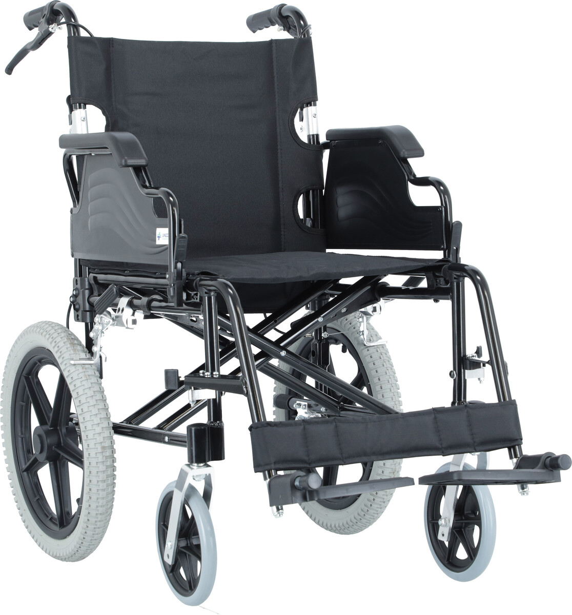 Ľahko prenosný skladací invalidný vozík s pevnou konštrukciou je určený na prevoz pacientov pomocou sprievodnej osoby.