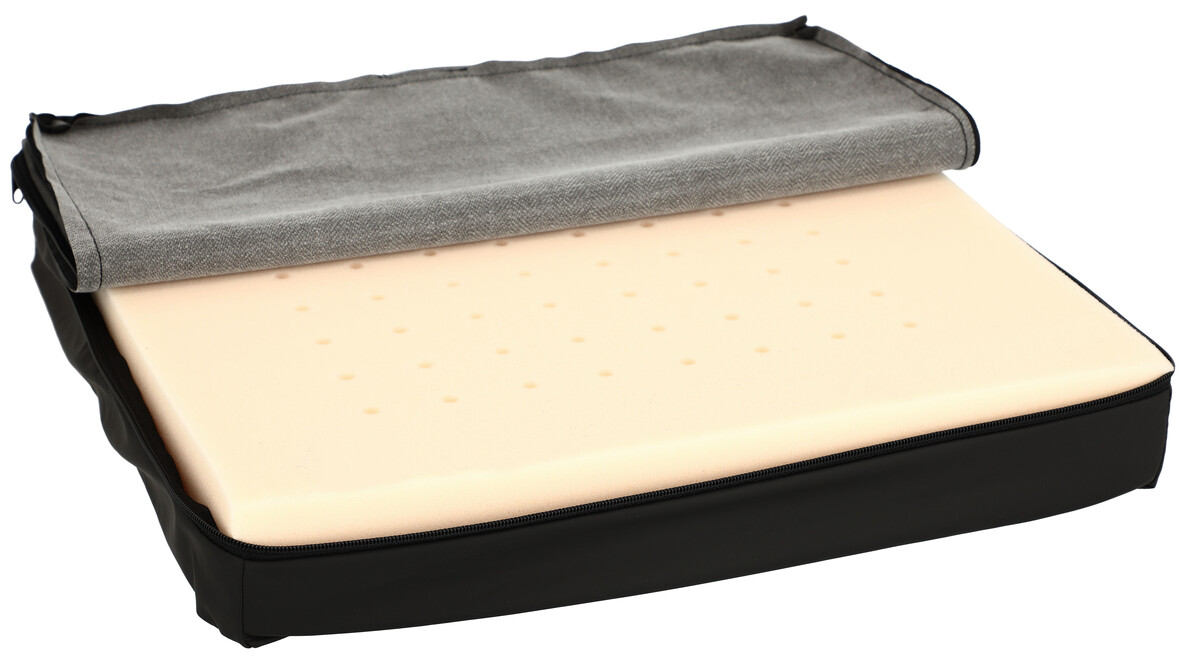 Perforovaná antidekubitná sedačka z vysokoelastickej peny je pohodlná, neobmedzuje užívateľa v pohybe a umožňuje mu meniť polohu pri sedení.