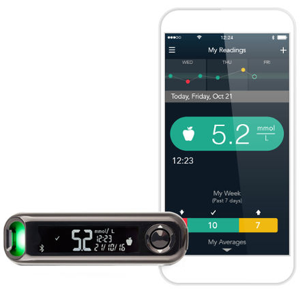 Tento prístroj môžete používať samostatne, alebo s aplikáciou Contour Diabetes (stiahnete si ju zadarmo cez smartfón v obchodoch AppStore a Google Play). Vďaka prepojeniu glukomera s aplikáciou Contour Diabetes sa Vám v smartfóne budú zaznamenávať výsledky merania hladiny glukózy v krvi počas celého dňa a môžu sa automaticky ukladať.
