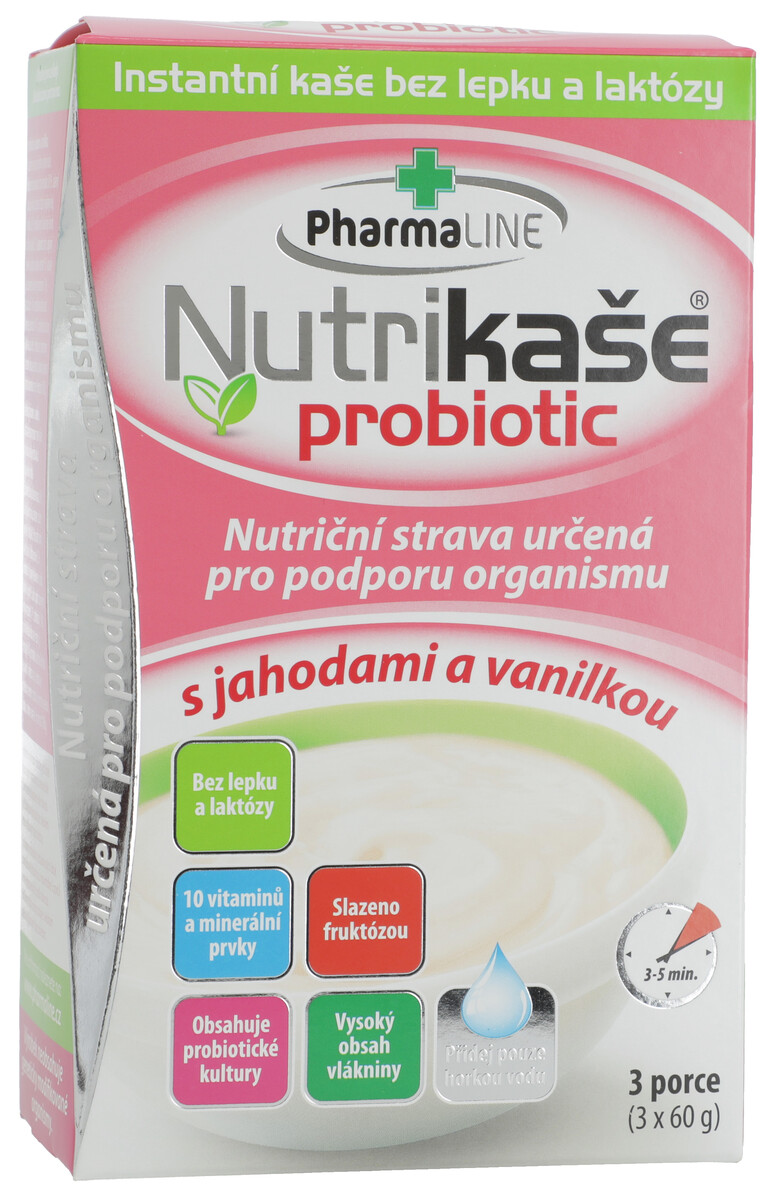 PharmaLINE Nutrikaša probiotic s jahodami a vanilkou, 3x 60 g