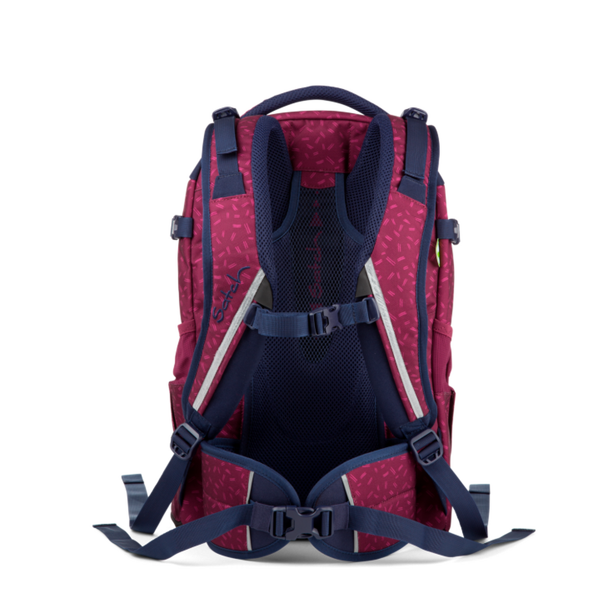 Batoh obsahuje nastaviteľný bedrový aj hrudný popruh. Tento systém popruhov zabezpečuje, že sa celková váha a záťaž prenáša do najstabilnejšej oblasti panvy. Školská taška je tak vždy umiestnená správne na chrbte a maximálne odľahčuje oblasti krčnej a bedrovej chrbtice.