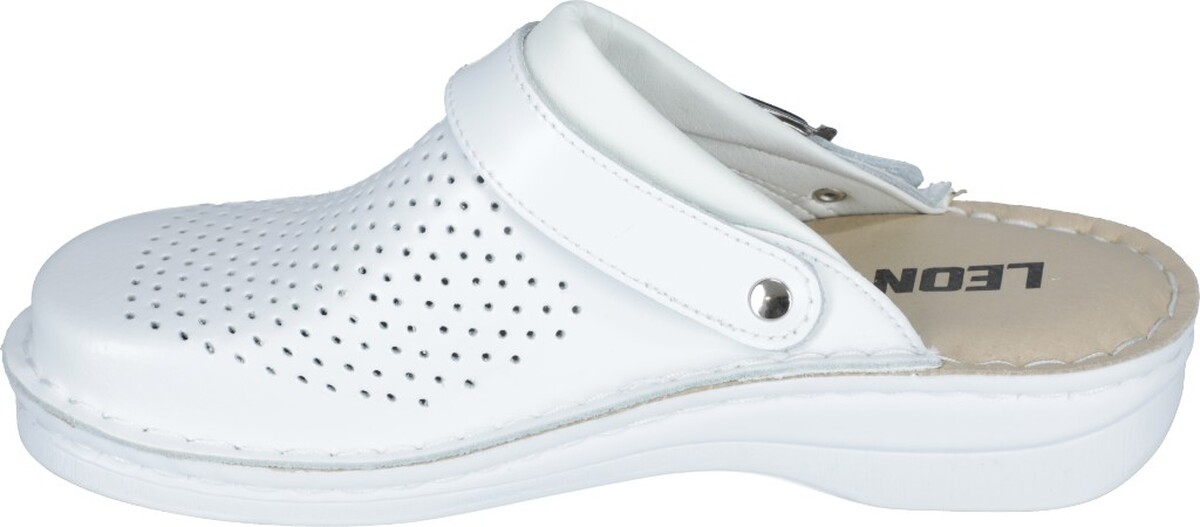 Podrážka zdravotných topánok Leon V202 je vyrobená z pružného materiálu, ktorý rozdeľuje zaťaženie a tým tlmí nárazy pri chôdzi. Stielka je potiahnutá prírodnou kožou, ktorá spolu s perforáciou hornej časti zaisťuje skvelú priedušnosť. Vďaka dostatočnému priestoru na prsty sú topánky vhodné aj pre osoby s haluxami/vybočeným palcom.