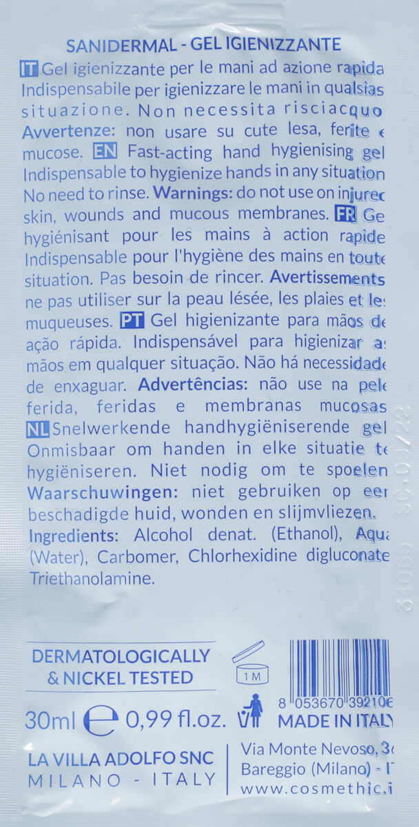 Vreckový antibakteriálny gél do kabelky Sanidermal, 30 ml