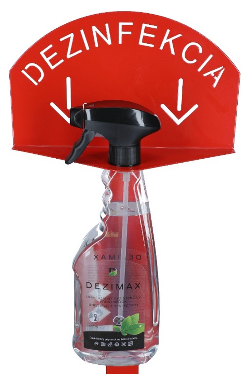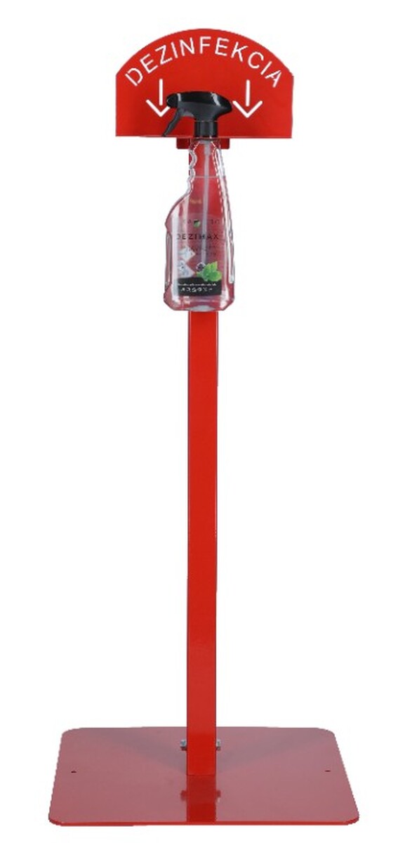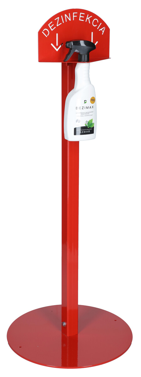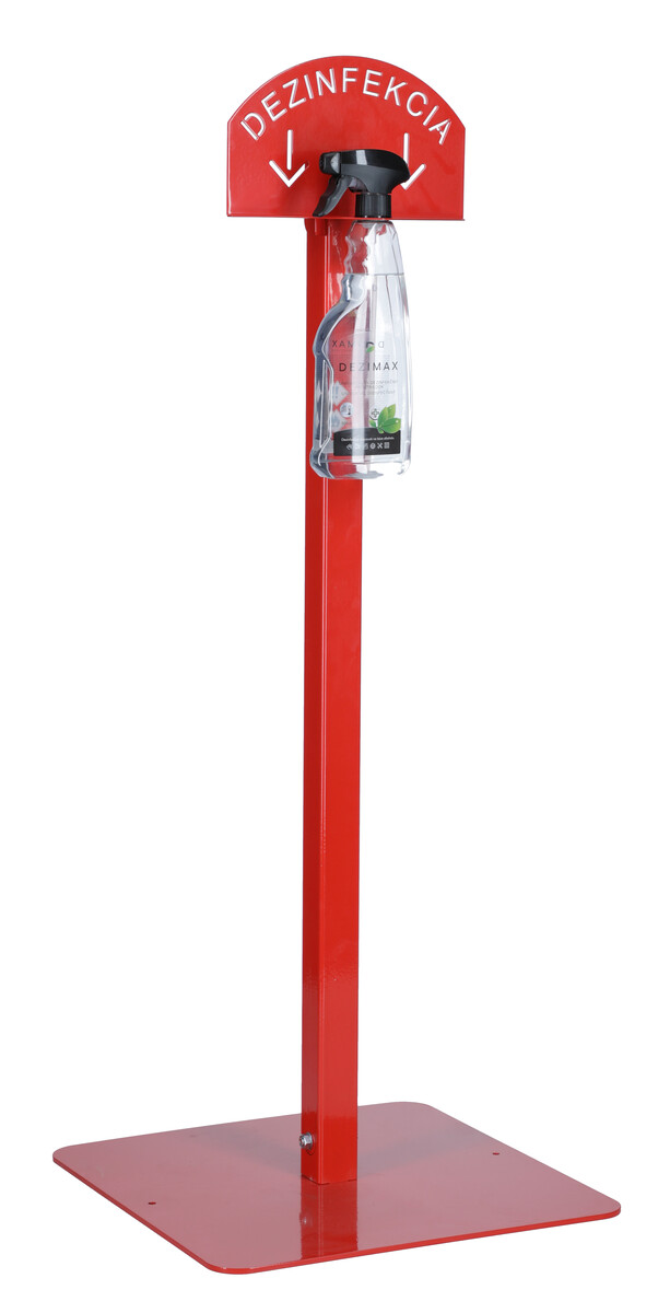 Stojan červený na dezinfekciu rúk s dezinfekčným prostriedkom DEZIMAX, 500 mlStojan červený na dezinfekciu rúk s dezinfekčným prostriedkom DEZIMAX, 500 ml