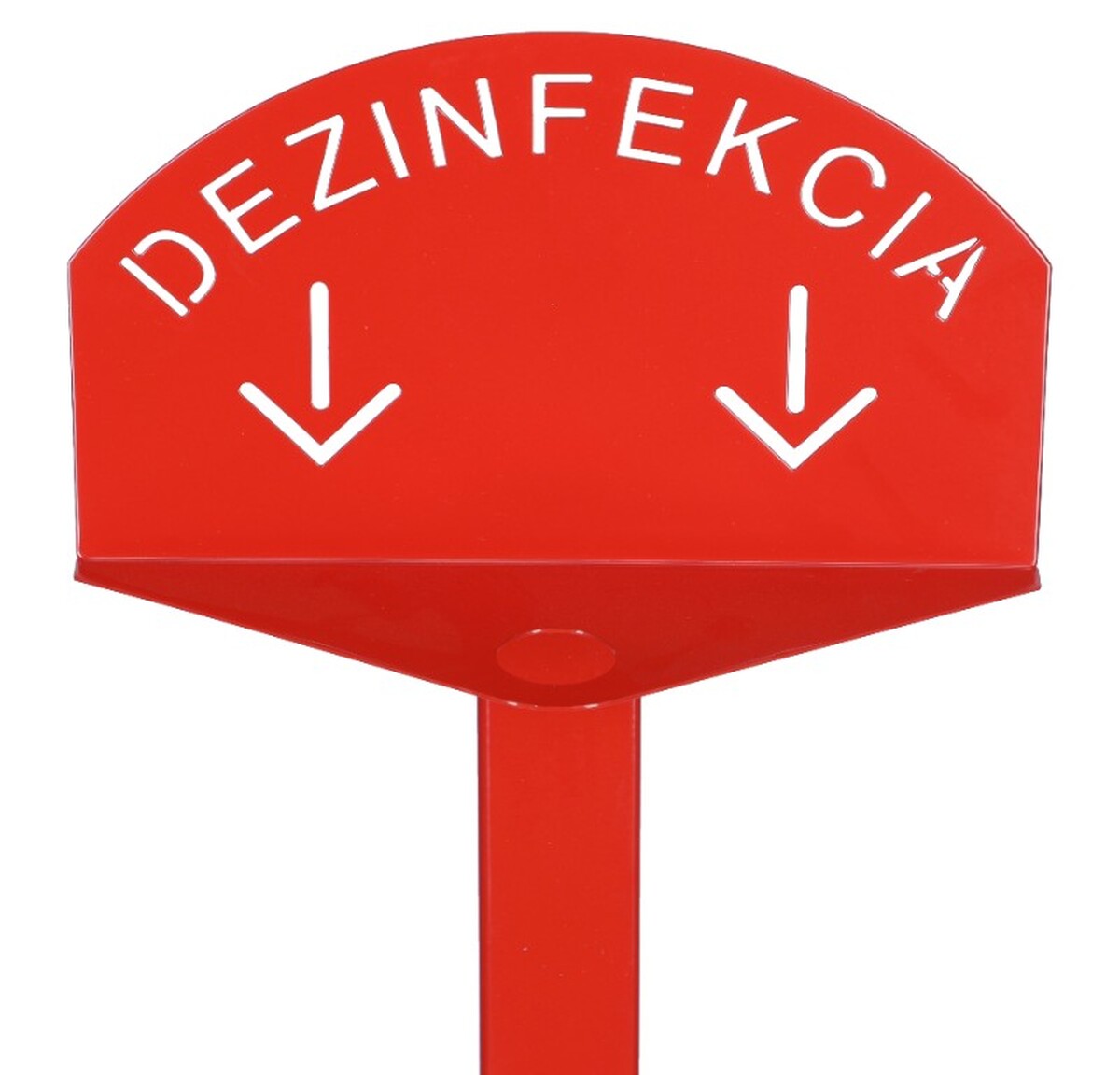 Univerzálny kovový sanitačný stojan umožňuje pevné namontovanie dezinfekčných prostriedkov na ruky pred vstupom do prevádzok či iných priestorov, kde je zvýšený pohyb osôb a kladený väčší dôraz na hygienu a predchádzanie prenosu baktérií a vírusov. Otvor s priemerom cca 3 cm pritom poskytuje možnosť upevnenia rôznorodej nádoby s dezinfekciou.