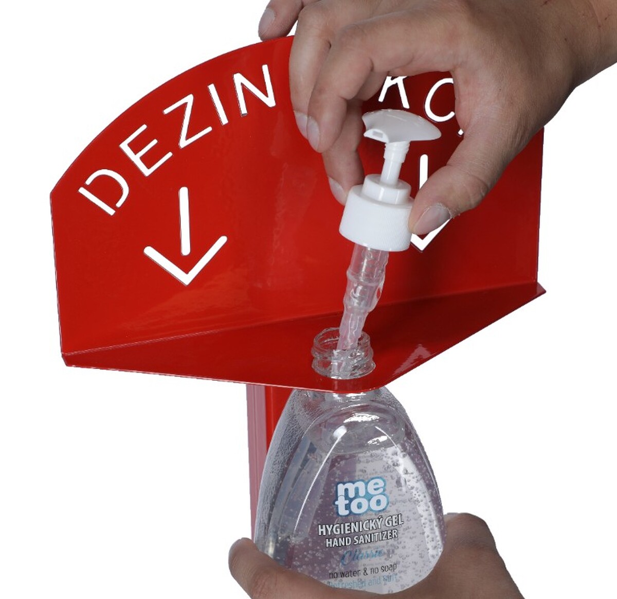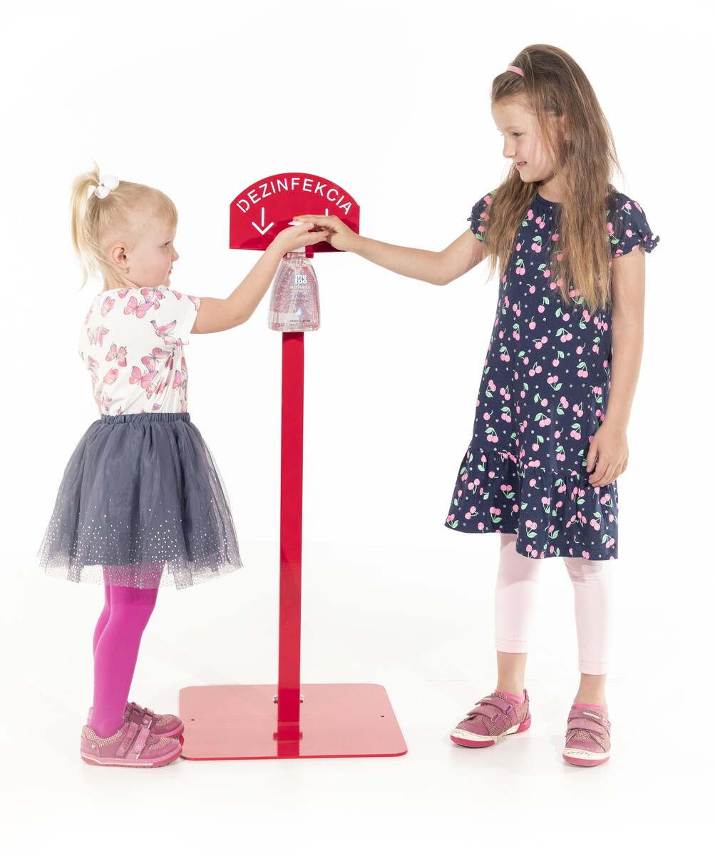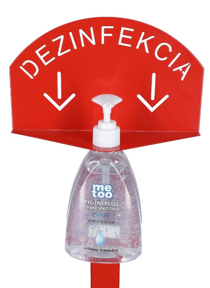 Stojan červený na dezinfekciu rúk s dezinfekčným gélom Me Too, 500 ml