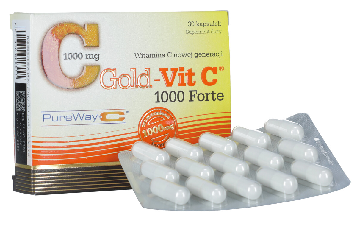 Gold-Vit C 1000 Forte predstavuje výživový doplnok v kapsulách s vitamínom C novej generácie PureWay-Ctm vo zvýšenej dávke podporujúci imunitný systém. Ide o mikrokapsulovaný komplex kyseliny L-askorbovej a prírodných rastlinných voskov (tukových metabolitov), ktoré sú pre žalúdok ľahko stráviteľné. Prípravok je obohatený tiež o citrusové bioflavonoidy, ktoré zvyšujú antioxidačný účinok vitamínu C.
