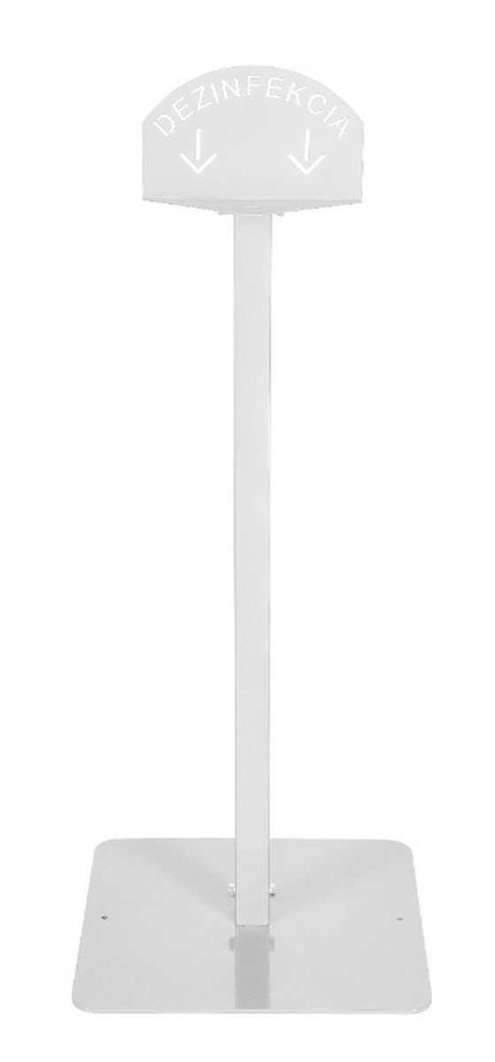 Stojan na dezinfekciu rúk má bielu farbu a informačný nápis.