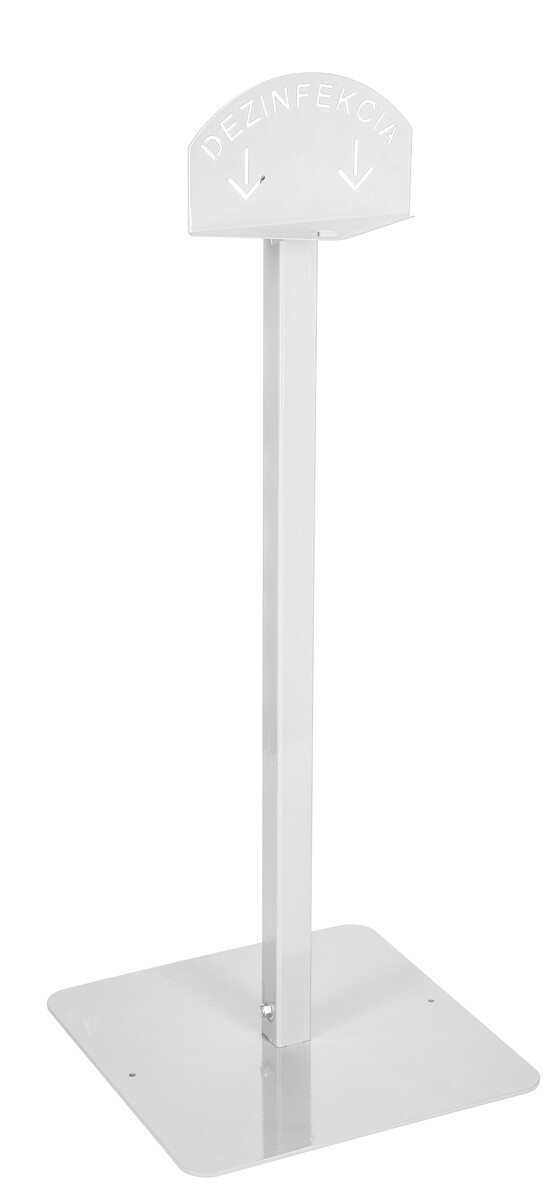 Univerzálny kovový sanitačný stojan umožňuje pevné namontovanie dezinfekčných prostriedkov na ruky pred vstupom do prevádzok či iných priestorov, kde je zvýšený pohyb osôb a kladený väčší dôraz na hygienu a predchádzanie prenosu baktérií a vírusov. Otvor s priemerom cca 3 cm pritom poskytuje možnosť upevnenia rôznorodej nádoby s dezinfekciou.