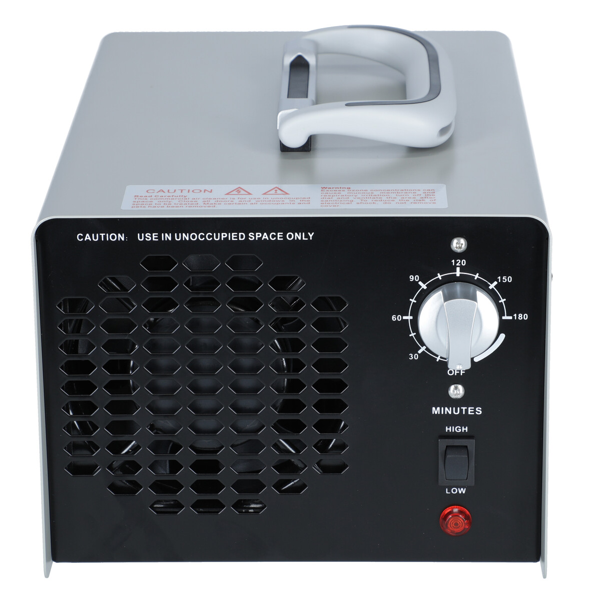 Dva stupne výkonu ozonizéra GREY 30000 ponúkajú 30 000 mg (30 gramov) ozónu za hodinu pre maximálnu rýchlosť dezinfekcie a 15 000 mg (15 g). To umožňuje flexibilné a plnohodnotné využitie prístroja, a to či už v priestoroch s vysokou záťažou a veľkým pohybom ľudí alebo v menších priestoroch a citlivejšom prostredí. K dispozícii máte časovač s rozsahom 0 až 180 minút. Ponúka teda dokonalé riešenie na každodennú prevádzku.