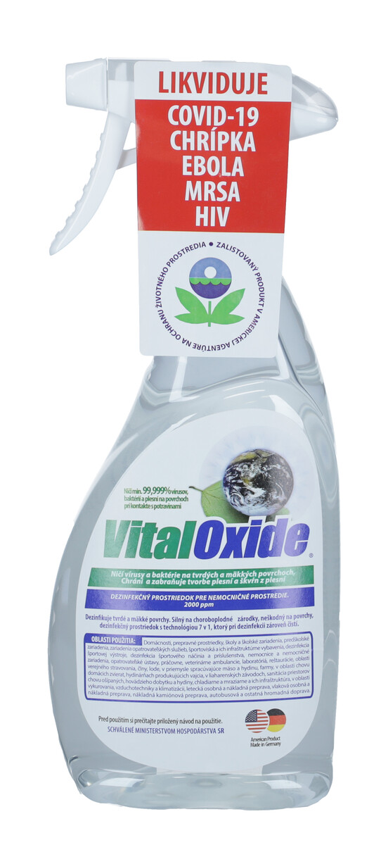 Vital Oxide bol na použitie proti koronavírusu COVID-19 oficiálne schválený americkou agentúrou pre ochranu životného prostredia EPA. SARS-CoV-2 likviduje už do 10 minút.