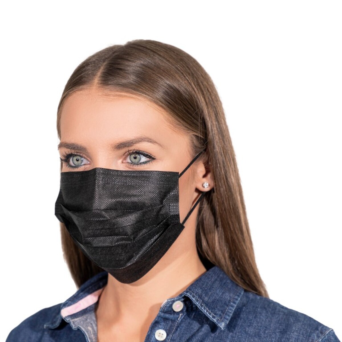 Rúška na tvár s gumičkou – chirurgické čierne, 50 ks