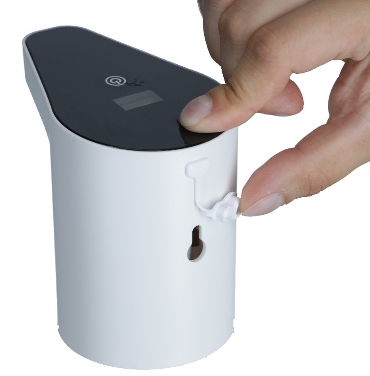 Na vrchu dávkovača sa nachádza multifunkčný gombík slúžiaci na zapnutie a vypnutie zariadenia a nastavenie intenzity dávkovania. V ponuke sú 2 úrovne dávkovania podľa potreby. LED indikátor svieti na modro, ak zariadenie vydáva dezinfekciu a takisto zasvieti aj pri vypnutí.