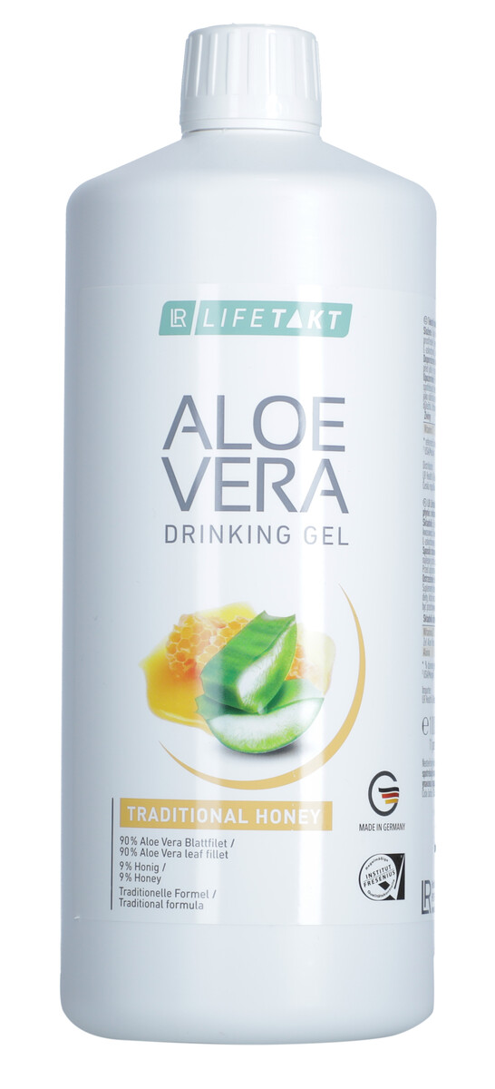 LR LIFETAKT Aloe Vera Drinking Gél Traditional s medom predstavuje unikátny prírodný výživový doplnok s 90 % gélu z listov Aloe Vera. Tento gél vďaka svojej jedinečnej kombinácii s kvetovým medom a vitamínom C pozitívne vplýva na rôzne ochorenia a problémy.